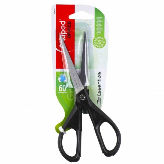 Купить Ножницы MAPED (Франция) "Essentials Green", 210 мм, черные, эргономичные ручки, картонная упаковка с европодвесом, 468110