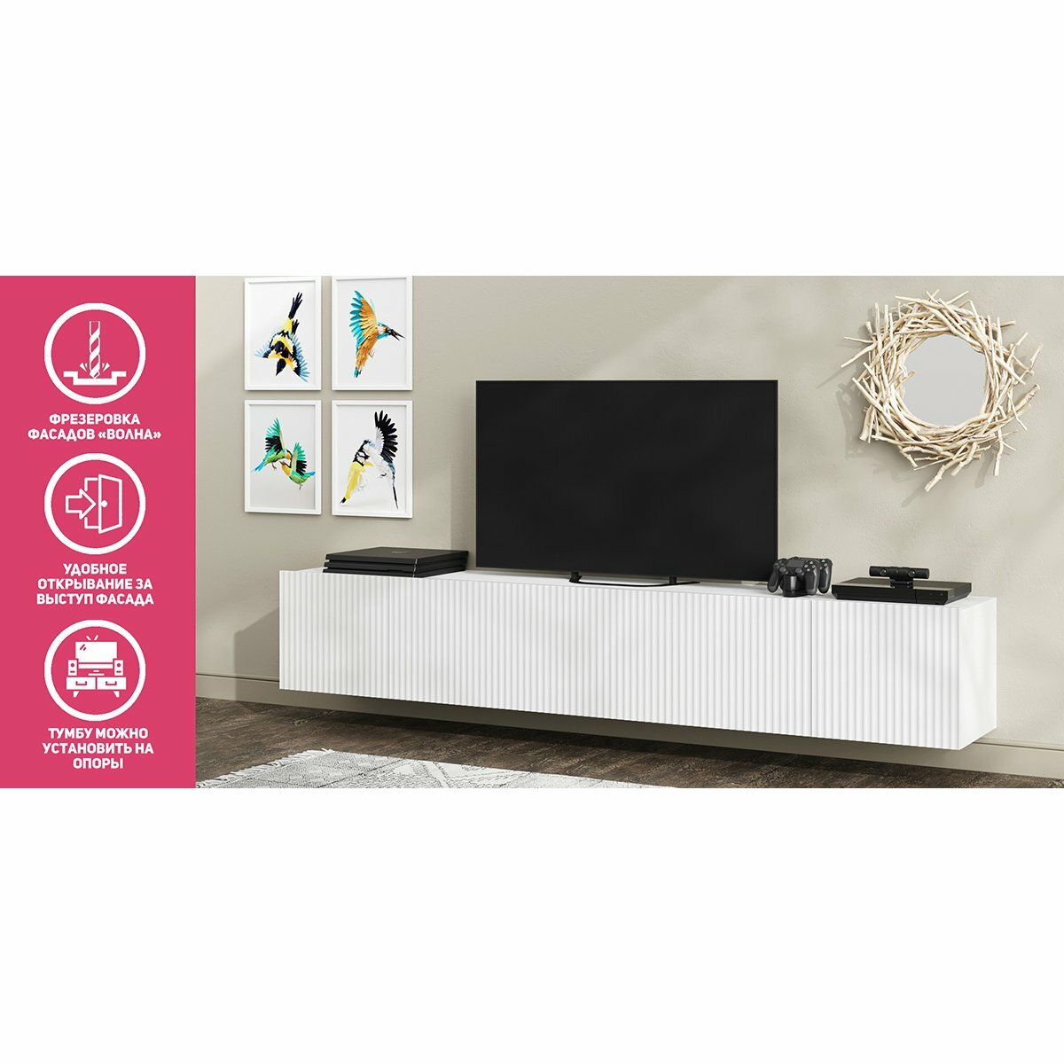 Тумба под ТВ МК Стиль Сканди Подвесная (без ножек) белый 213х35х35.2 см