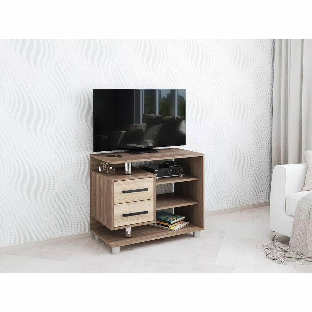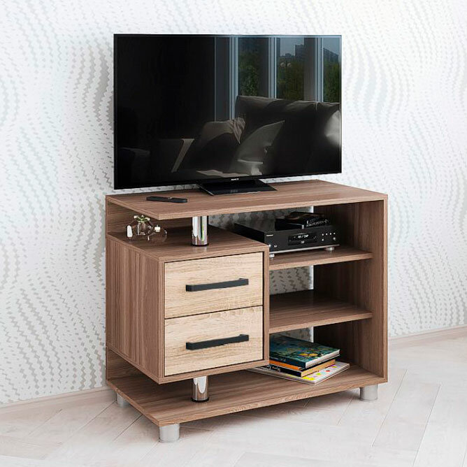 Тумба под телевизор с двумя ящиками и открытыми полками ЛДСП