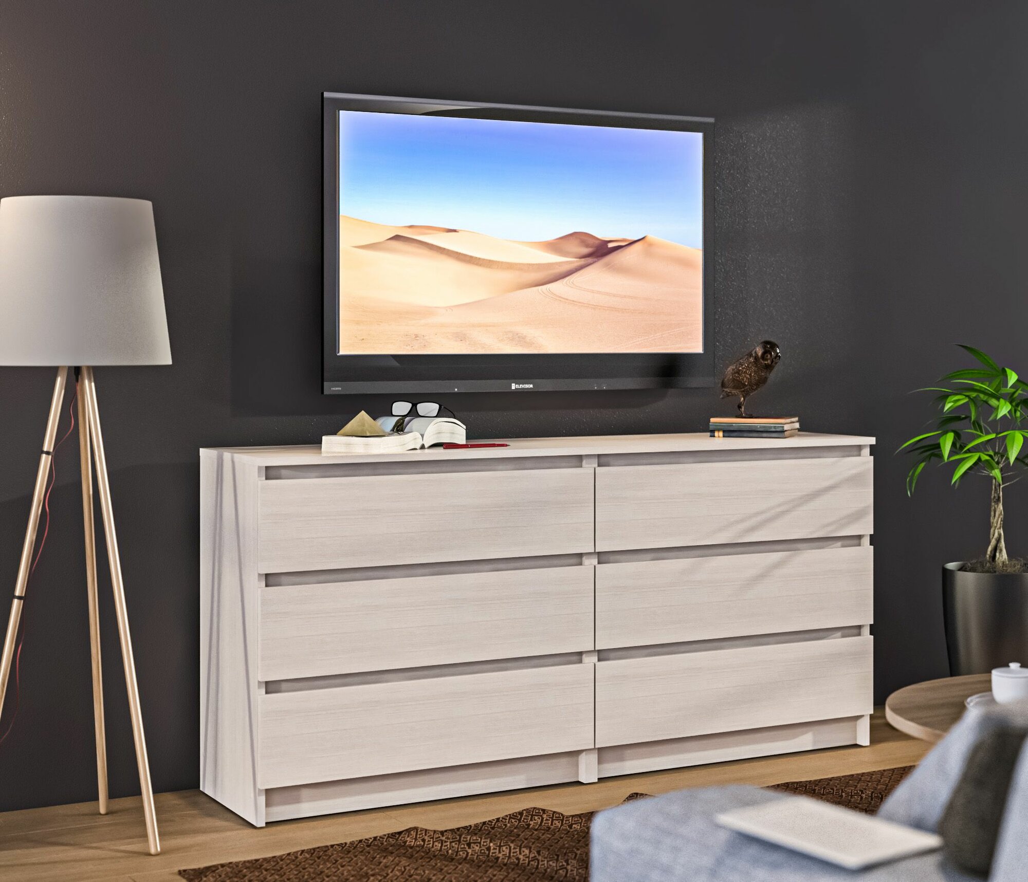 Комод столплит Леон СБ-3289 с 6 ящиками, без ручек, Диамант серый 156х75х39 см
