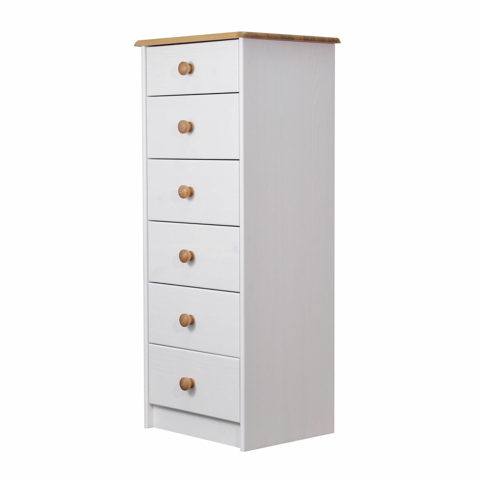 Комод белый с 6 ящиками Хаба из массива сосны, высокий деревянный комод в спальню и детскую, белый/антик