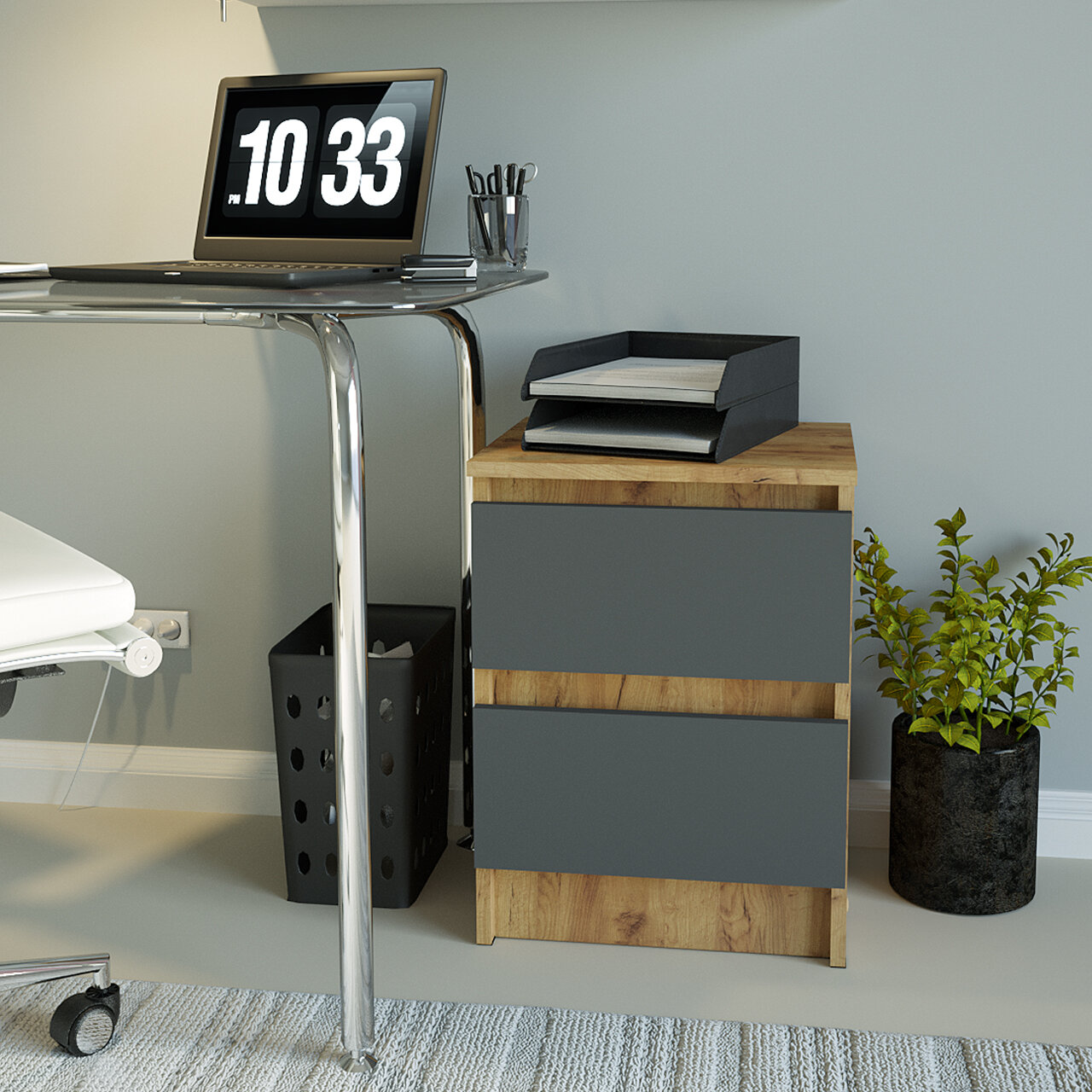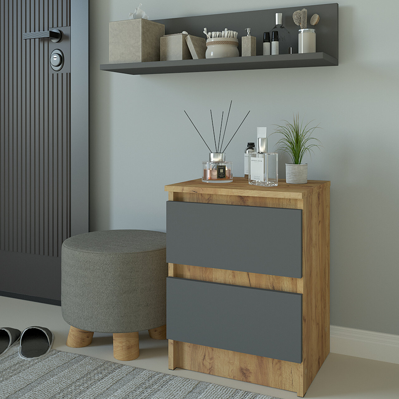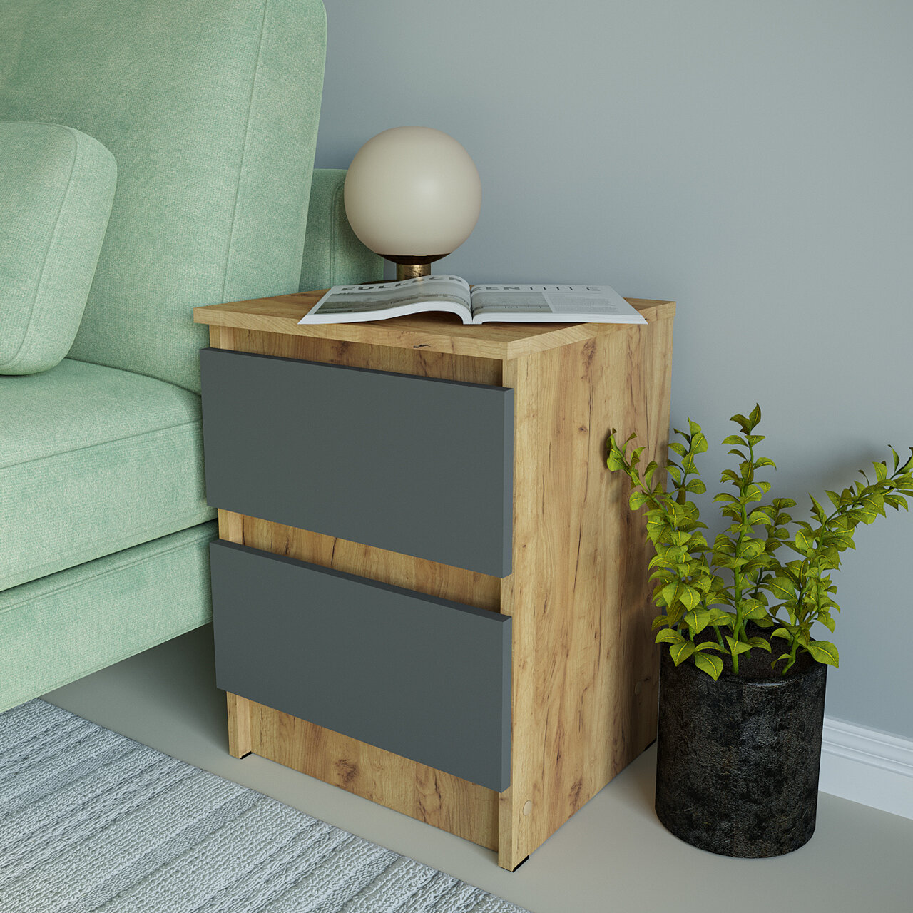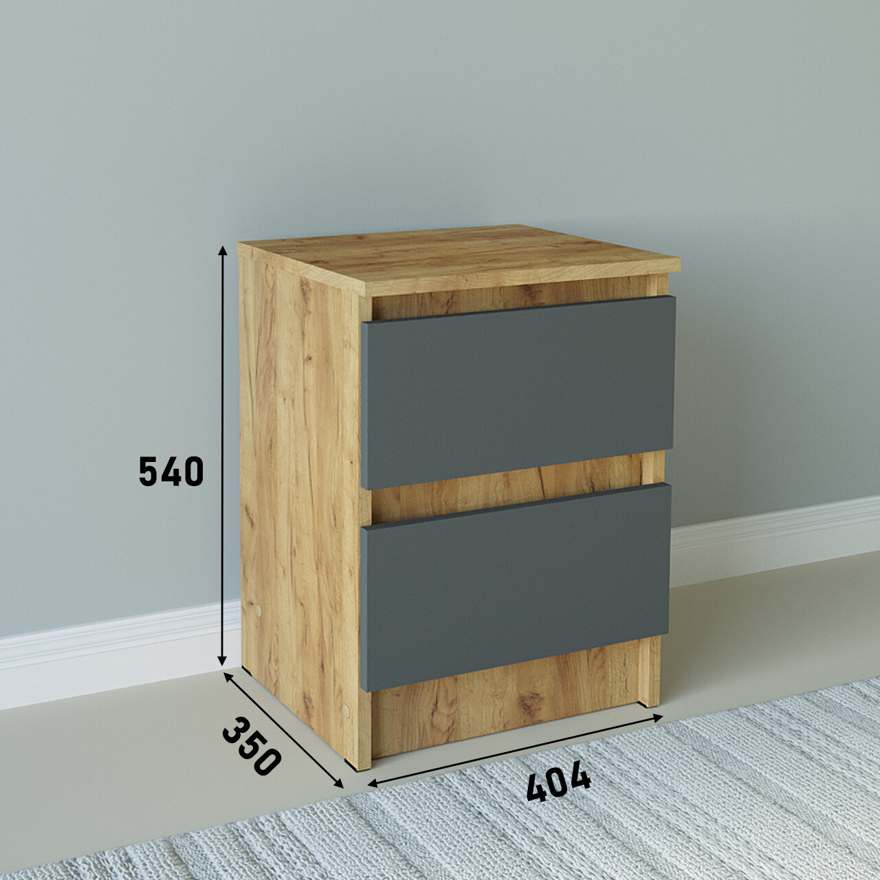 Тумба прикроватная 2 ящика Мальма Графит 40-54-35