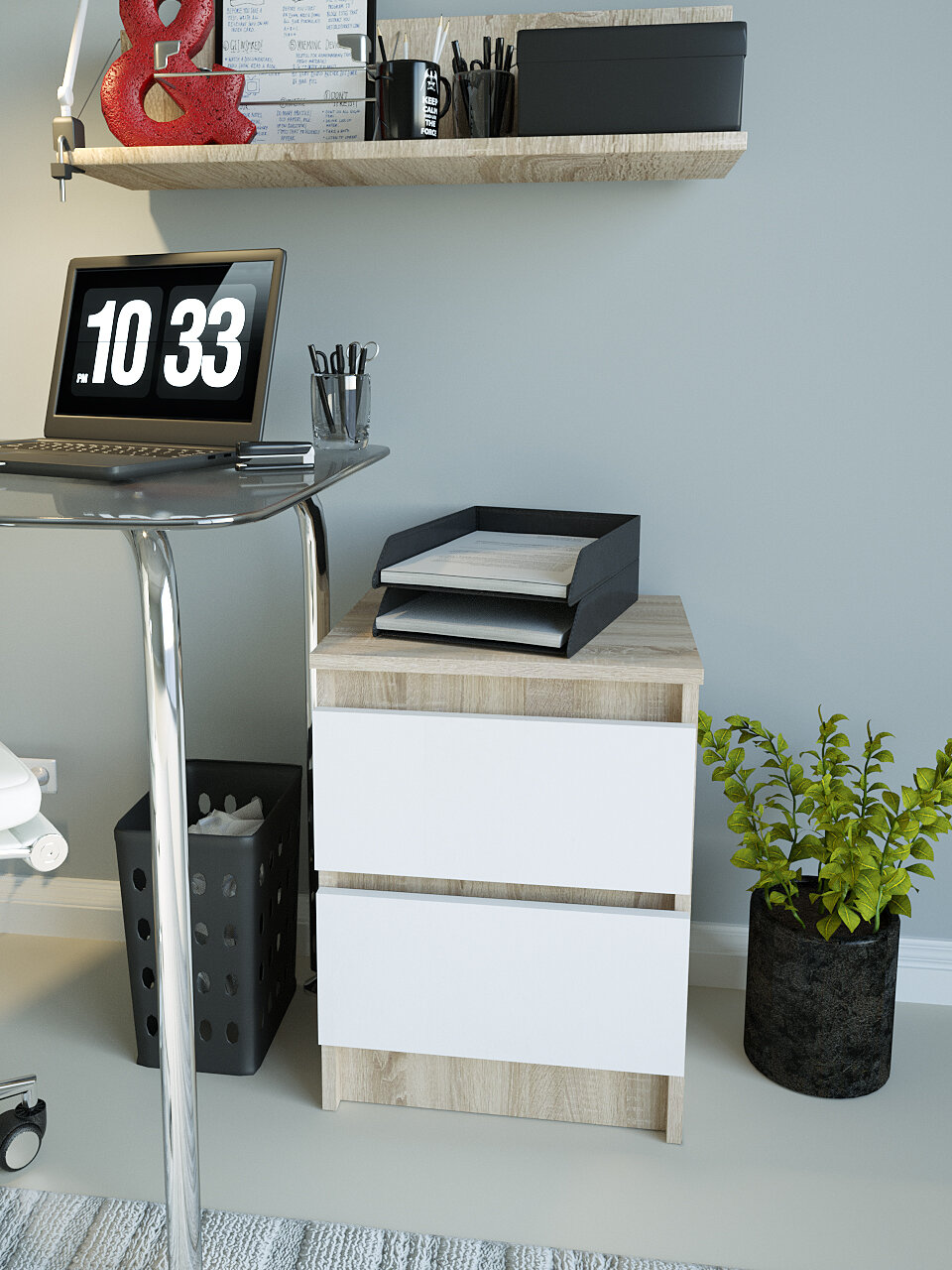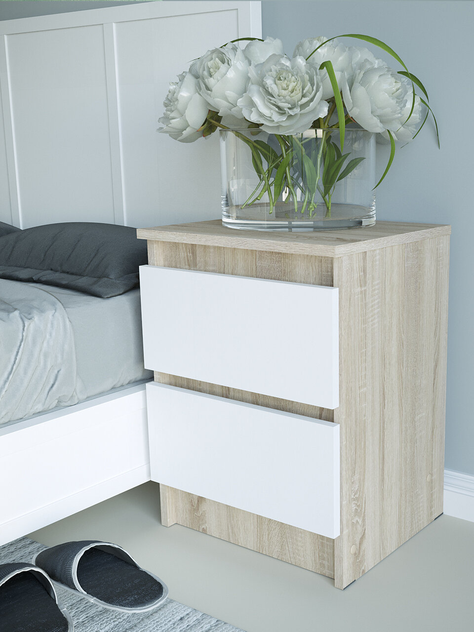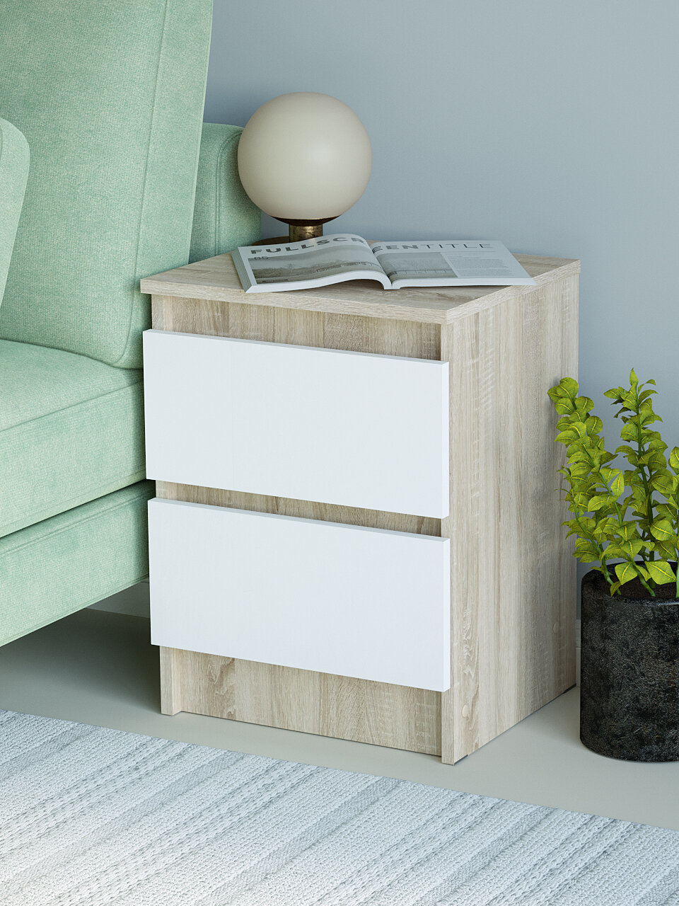 Купить Тумба прикроватная 2 ящика Сонома с белыми фасадами 40-54-35 Мальма