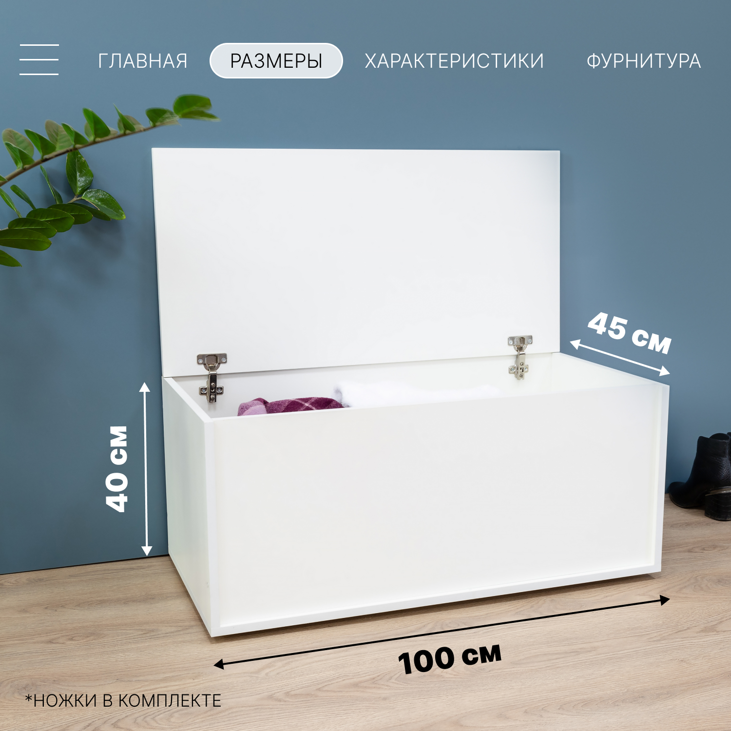 Тумба сундук с откидной крышкой 100х45х40 см на балкон, в прихожую спальню, для вещей, для игрушек