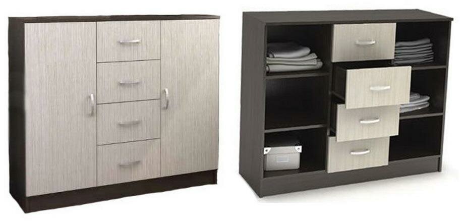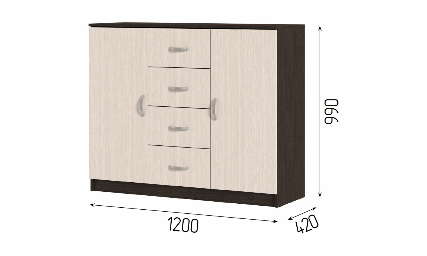 Комод 4 ящика и 2 створки КМ 555М «Бася» (Шимо тёмный/Шимо светлый) CM