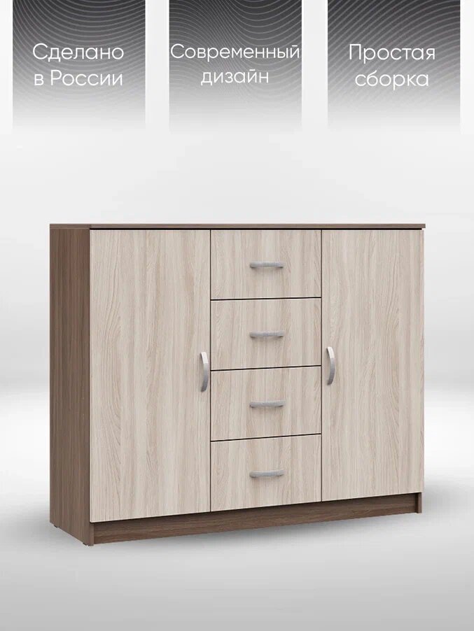 Комод 4 ящика и 2 створки КМ 555М «Бася» (Шимо тёмный/Шимо светлый) CM