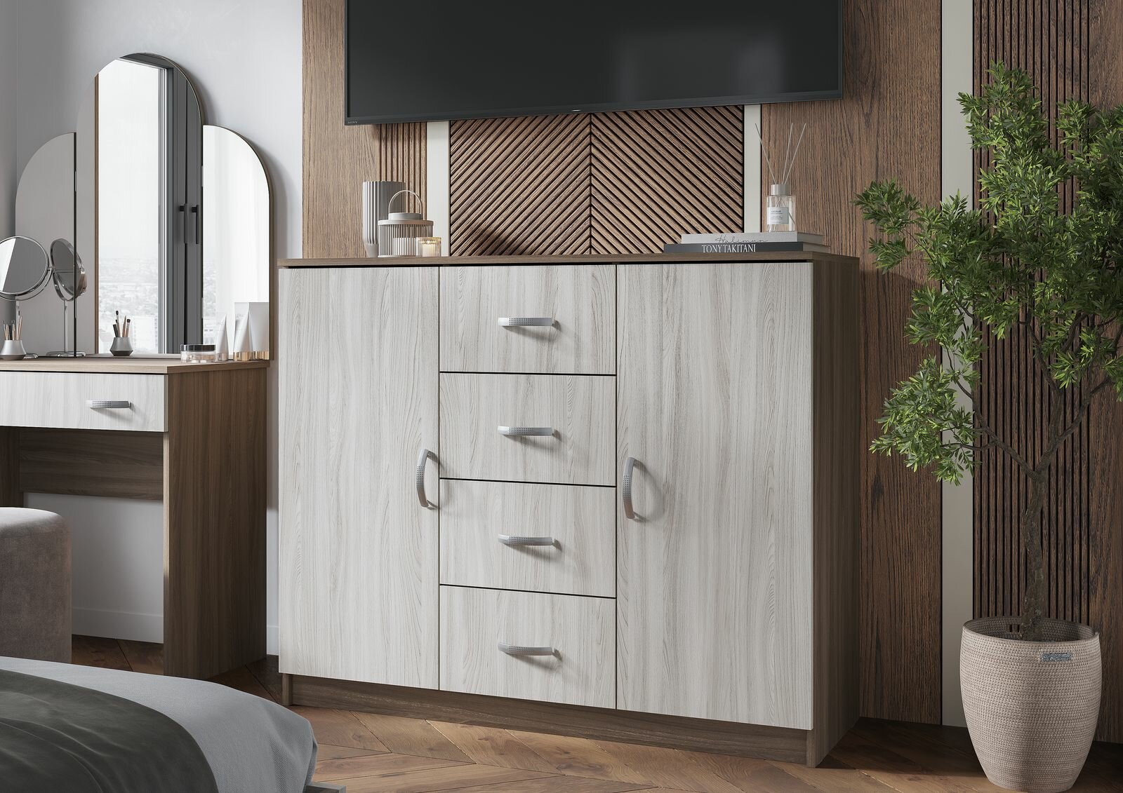 Комод 4 ящика и 2 створки КМ 555М «Бася» (Дуб крафт серый/Дуб крафт белый) CM