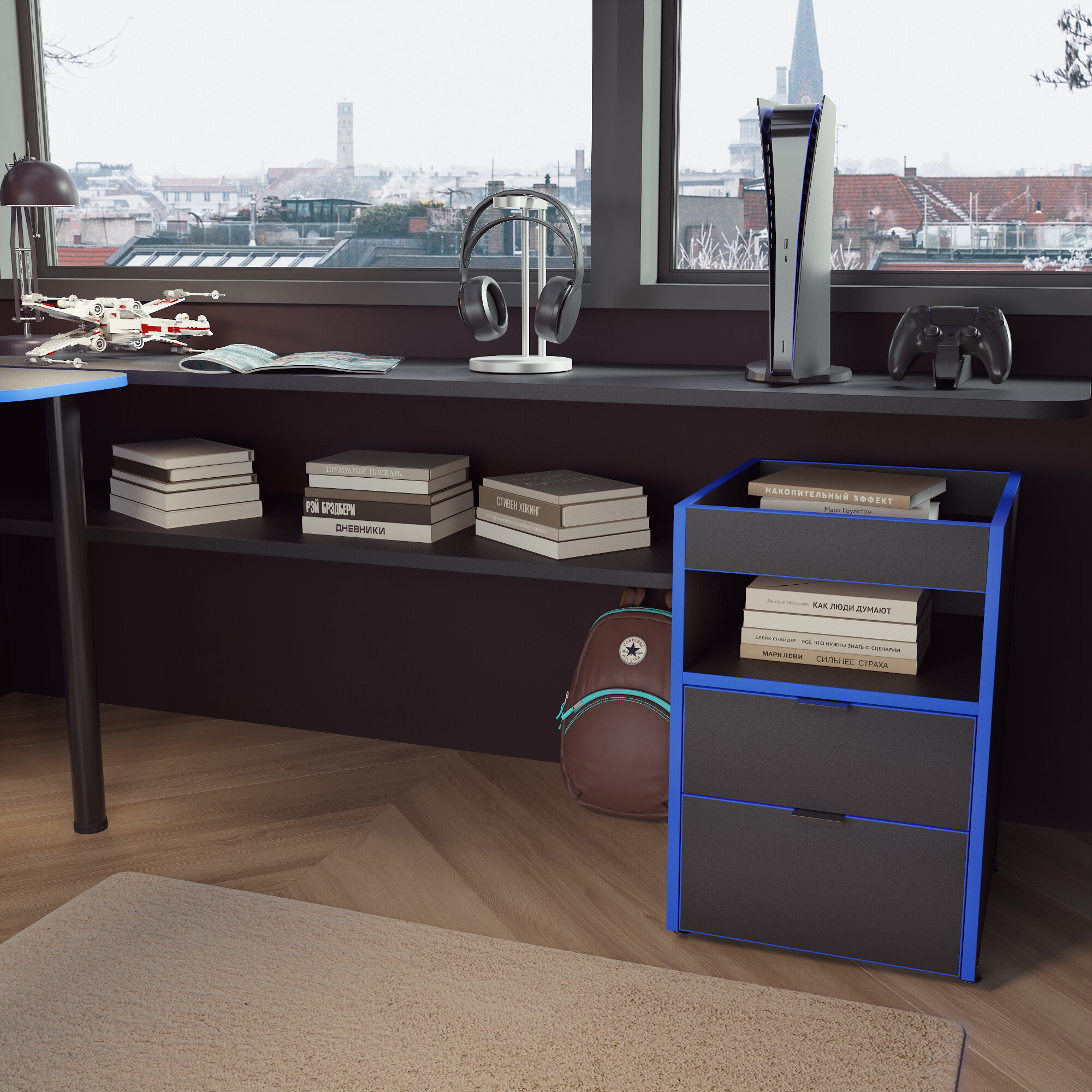 СохранитьТумба для игрового компьютерного стола Xplace,Черно-синяя интересное:
