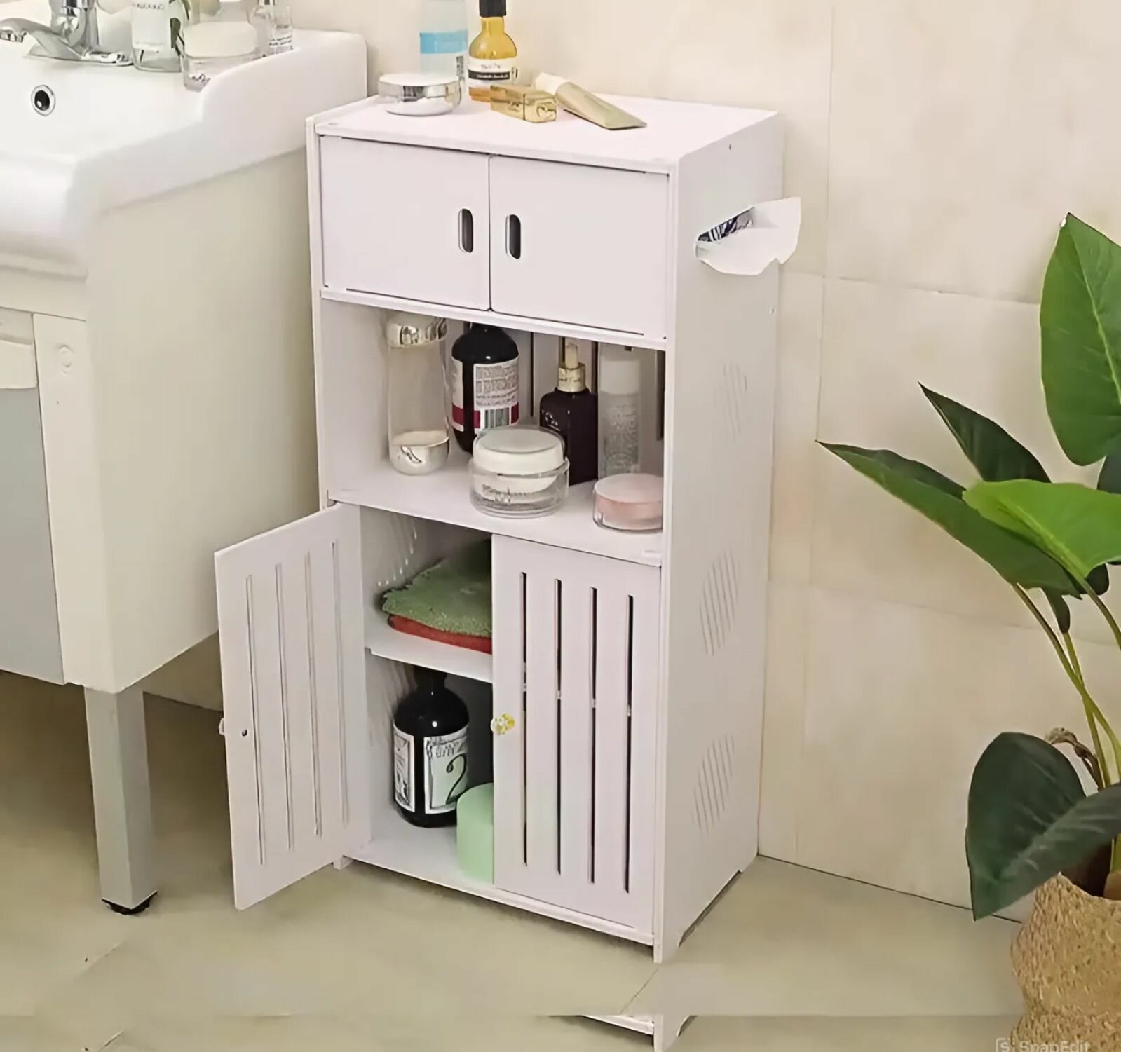 Шкаф в ванную напольный Classmark с держателем для туалетной бумаги, мебель в ванную комнату с полками и дверцами, ПВХ, белый интересное: