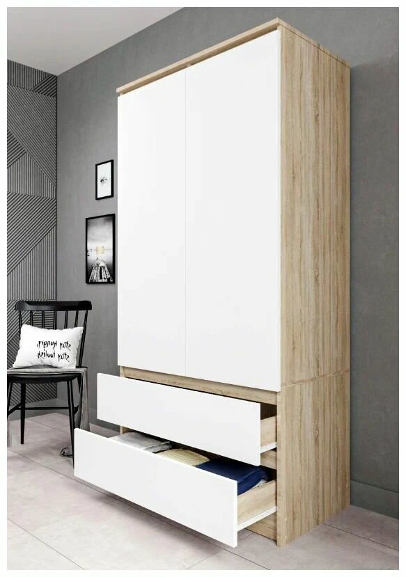 Шкаф Челси 2-створчатый, с ящиками, дуб сонома/белый, 179,6х90,2х51,4 см