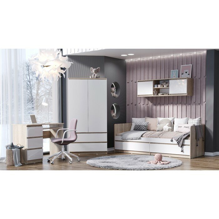 Шкаф 2-х дверный Миф Челси, 2 ящика, белый глянец / дуб сонома 90.2х51.4х179.6 см