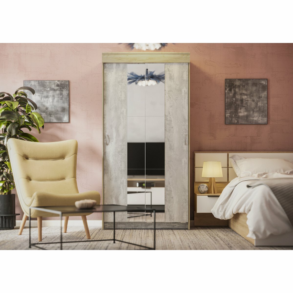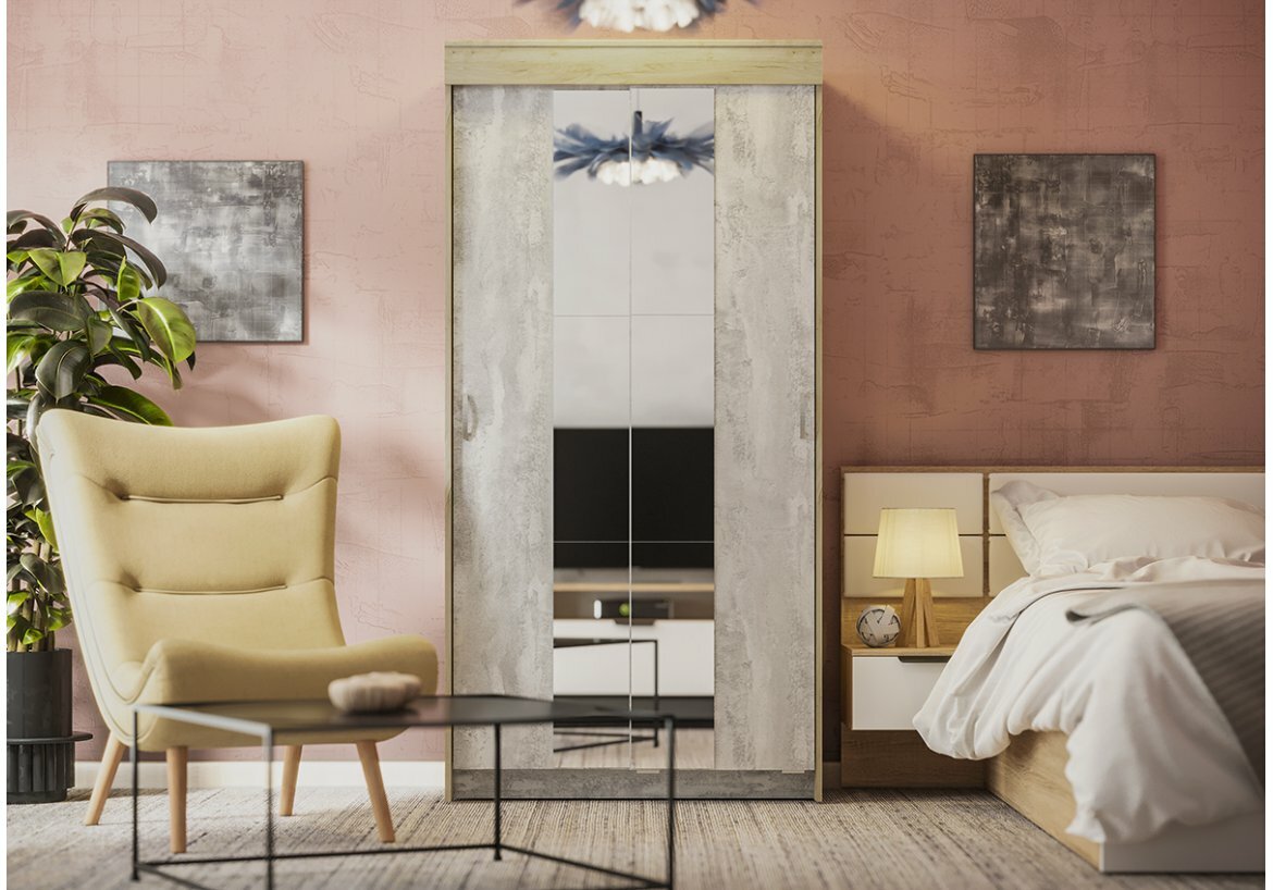 Шкаф-купе для одежды с зеркалом Нонтон Боссо, дуб крафт серый / бетонный камень, 100 см