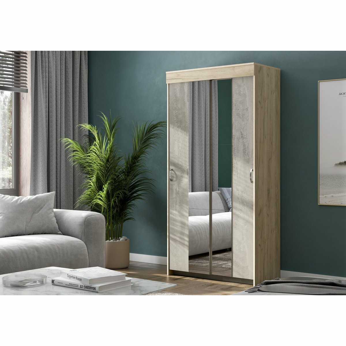 Шкаф-купе для одежды Нонтон Бассо, 2 зеркала, дуб крафт серый / бетонный камень 100 см