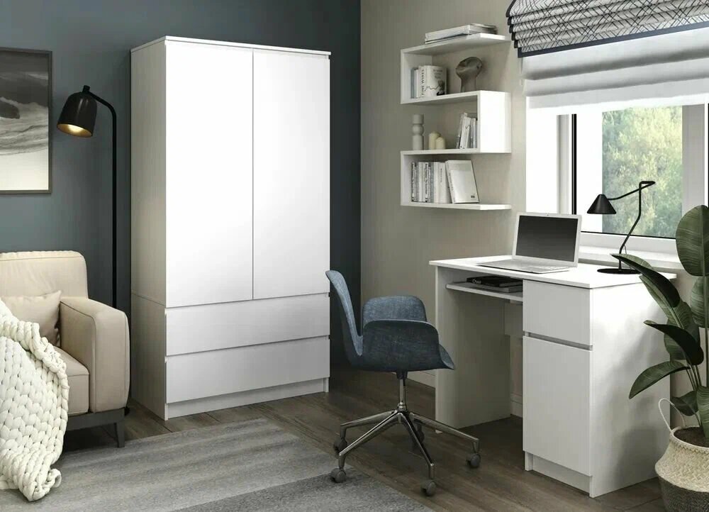 Шкаф для одежды распашной Нонтон Луас, 120 см, 7 полок и штанга, белый глянец