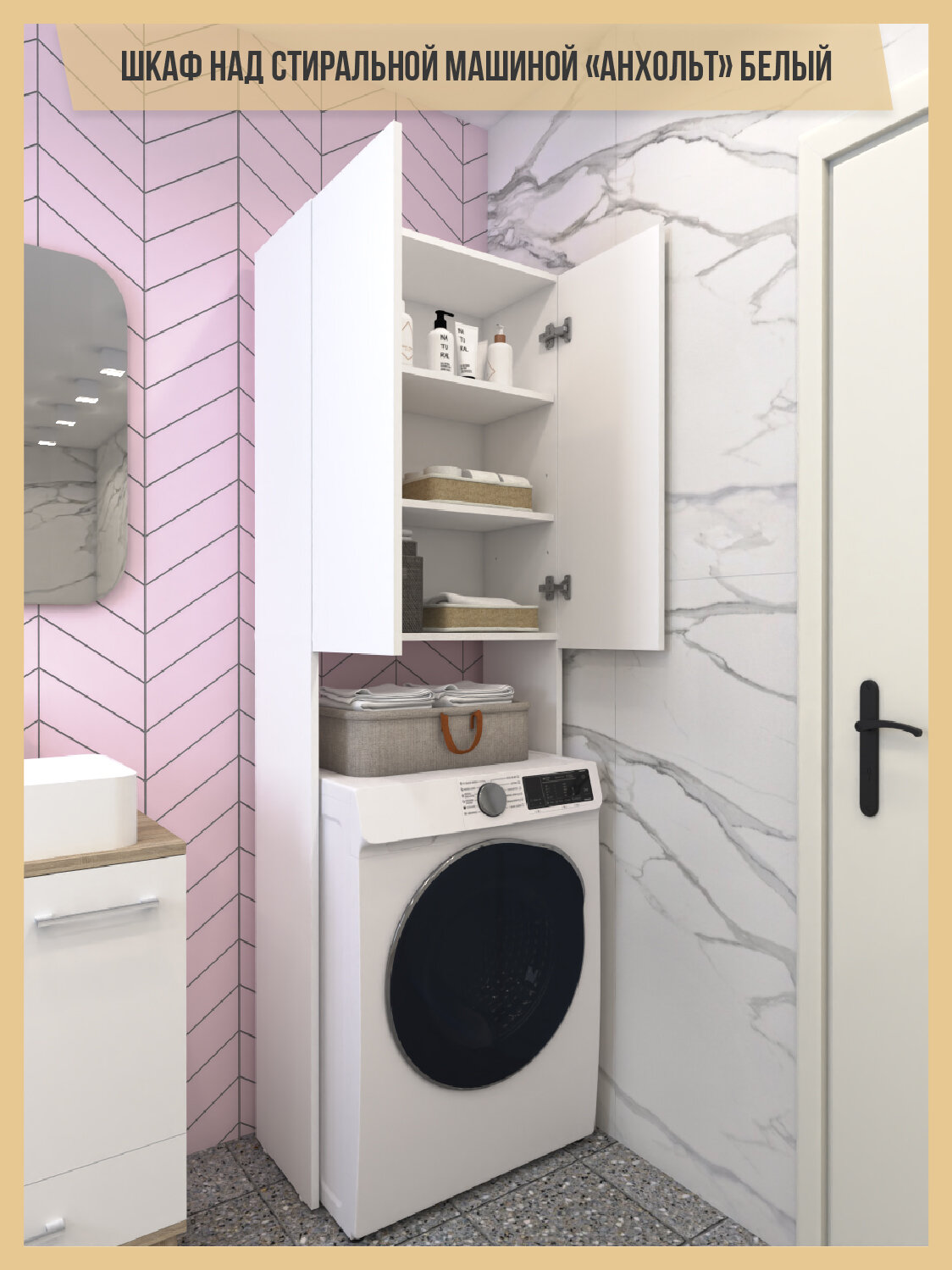 Шкаф Milkstone "Анхольт", для стиральной машины, ЛДСП, доводчики, 64 см x 32 см x 198 см, белый