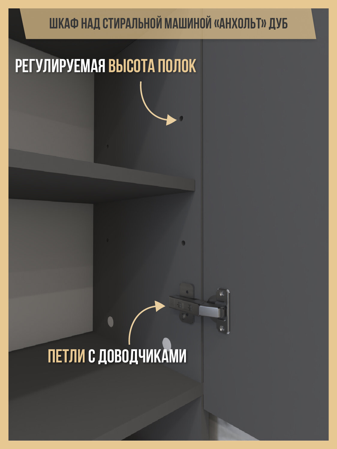 Шкаф Milkstone "Анхольт", над стиральной машиной, ЛДСП, 64х32х198 см Дуб Графит