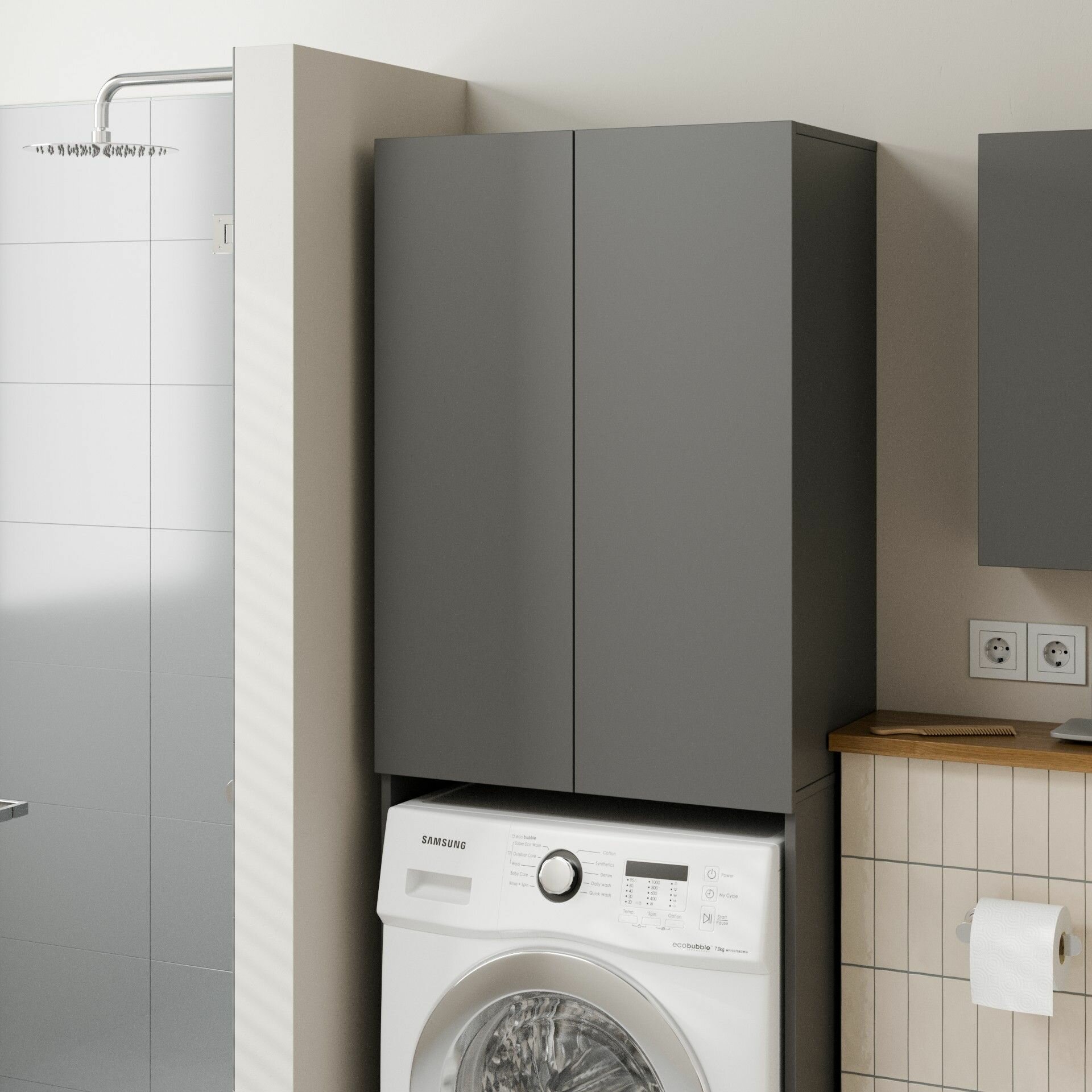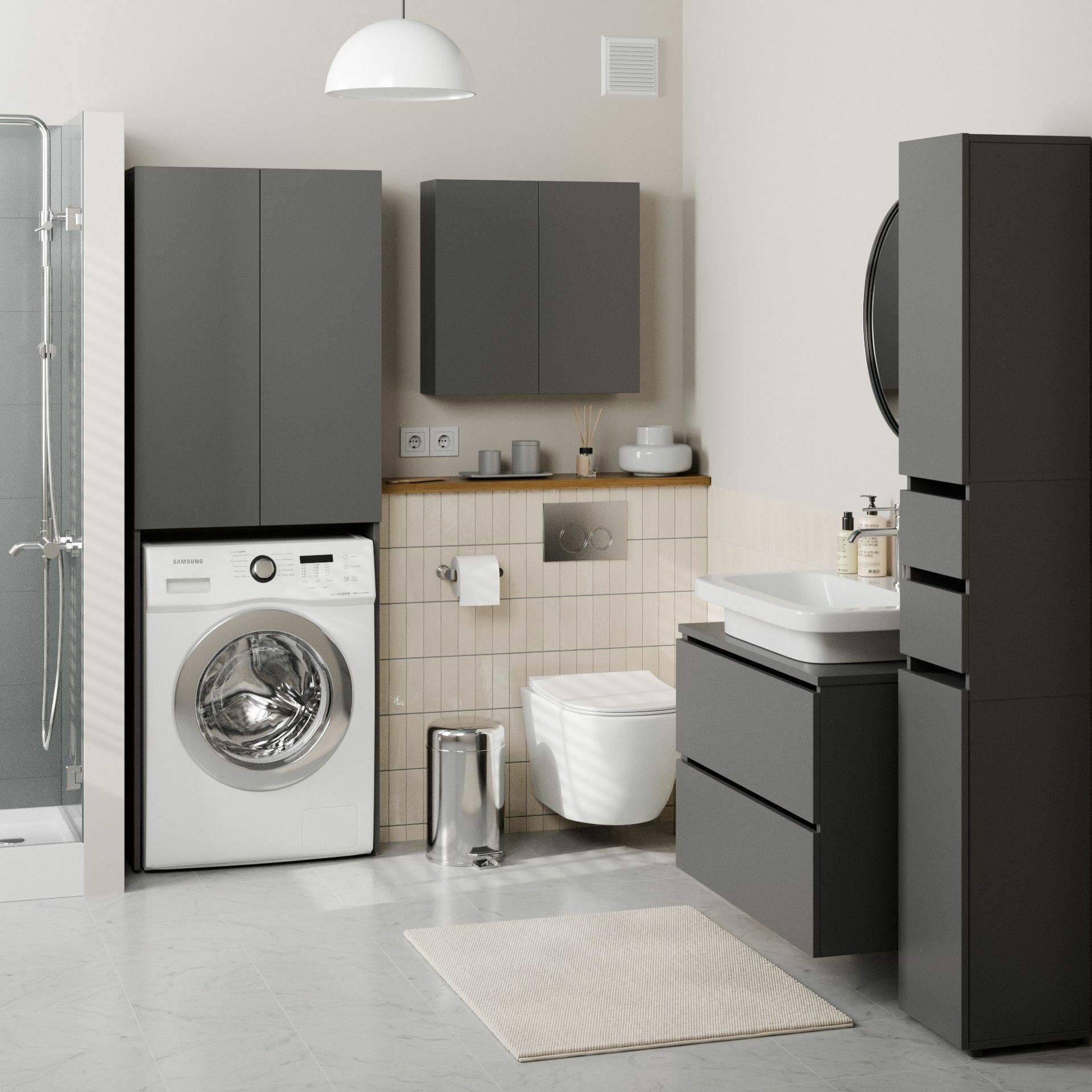 Купить Шкаф над стиральной машиной напольный в ванную серый графит