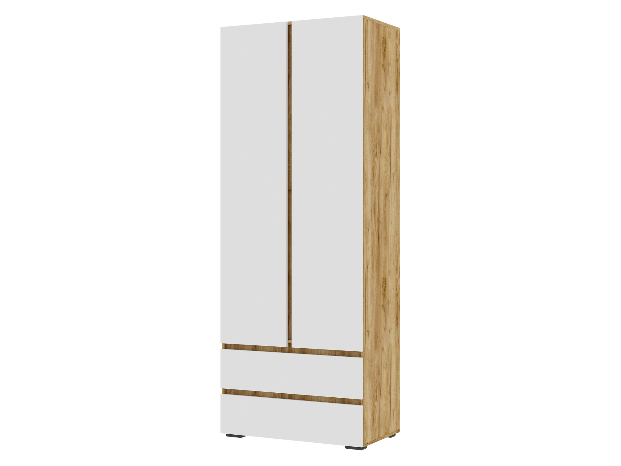 Распашной шкаф для одежды с ящиками, со штангой, с полками, 80х46х210 см, Белый / Дуб Крафт золотой, Хелен ШК 01