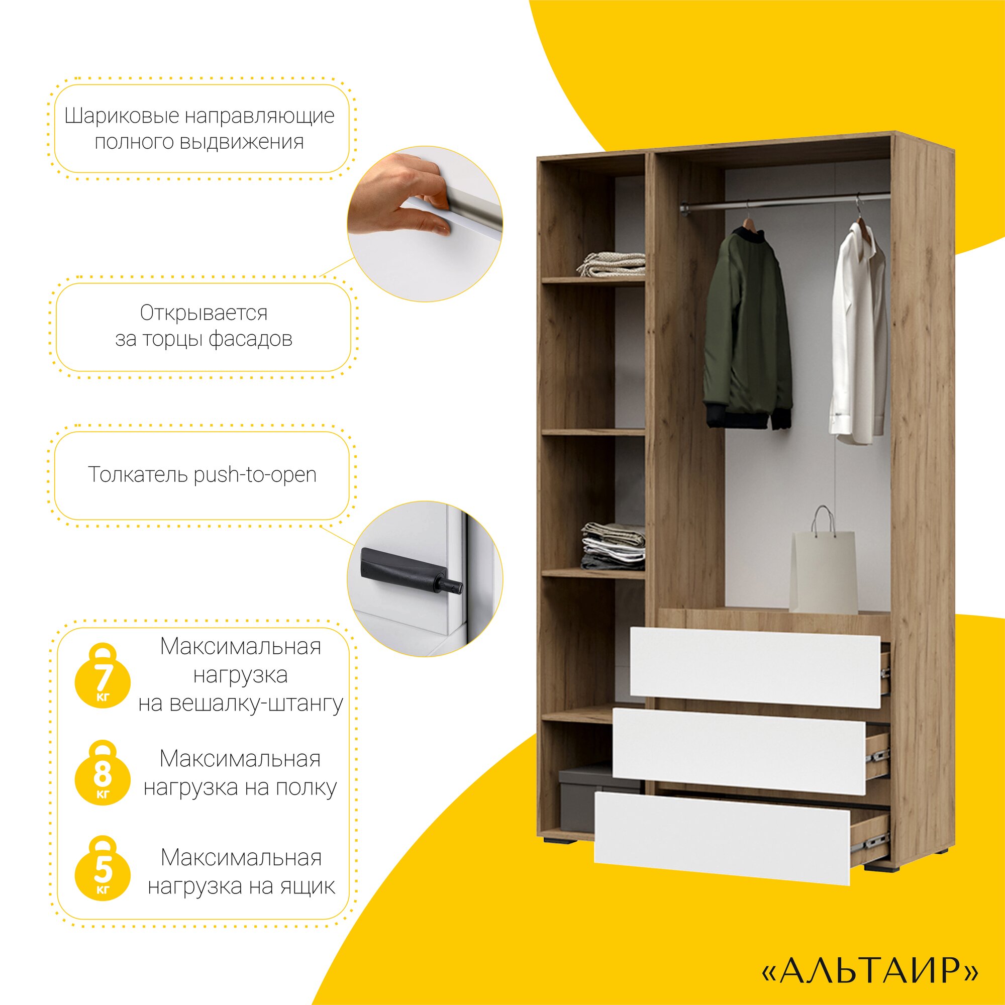 Шкаф для одежды распашной Нонтон Луас, 120 см, 7 полок и штанга, белый глянец
