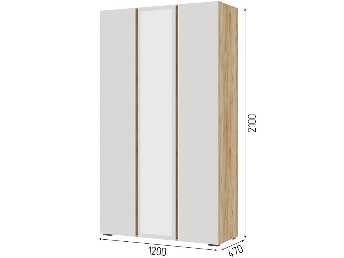 Купить Шкаф 3х створчатый с зеркалом Хелен ШК 02 белый/дуб крафт 120x210x46см