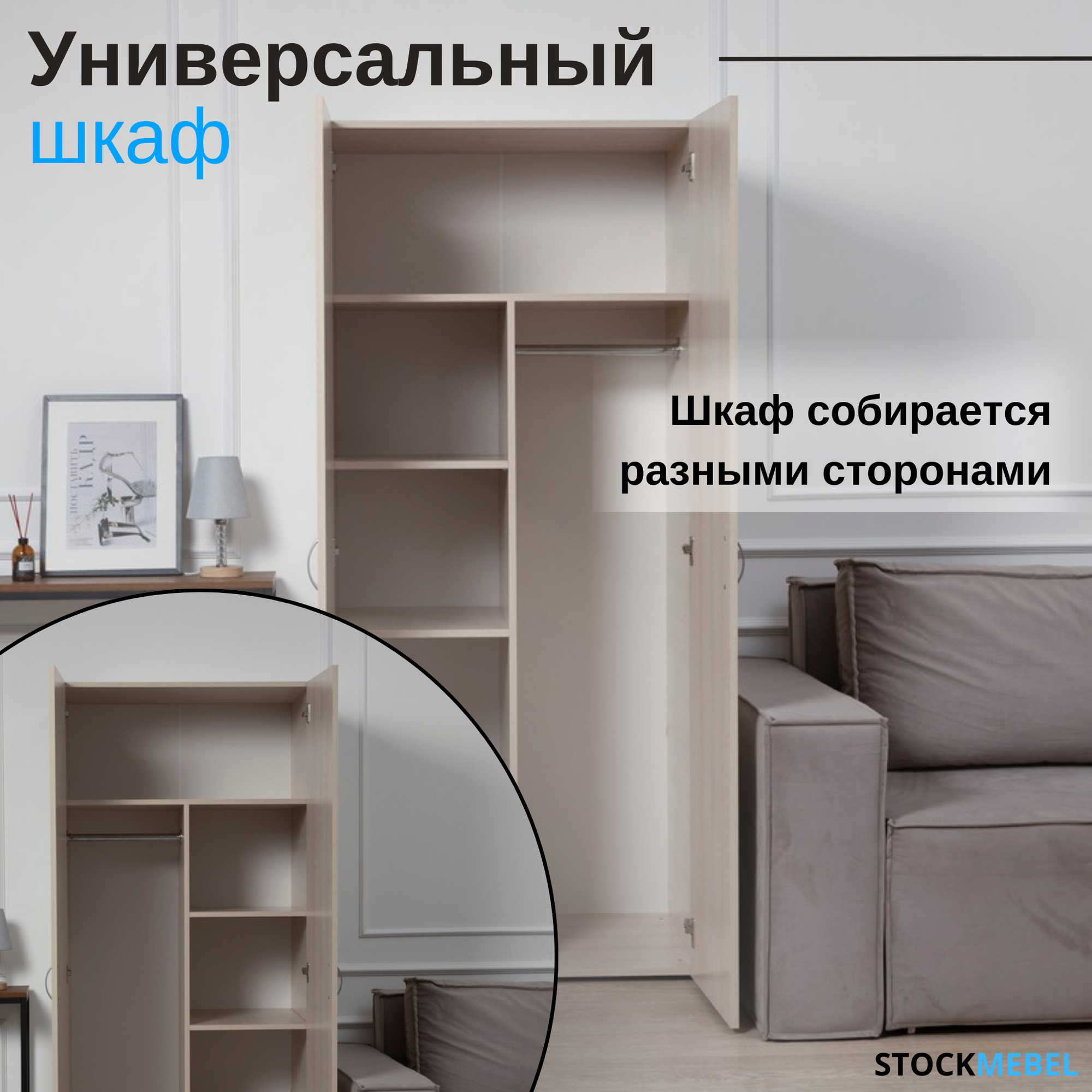Купить Шкаф распашной универсальный для хранения одежды, Дуб Шамони 81х53х186