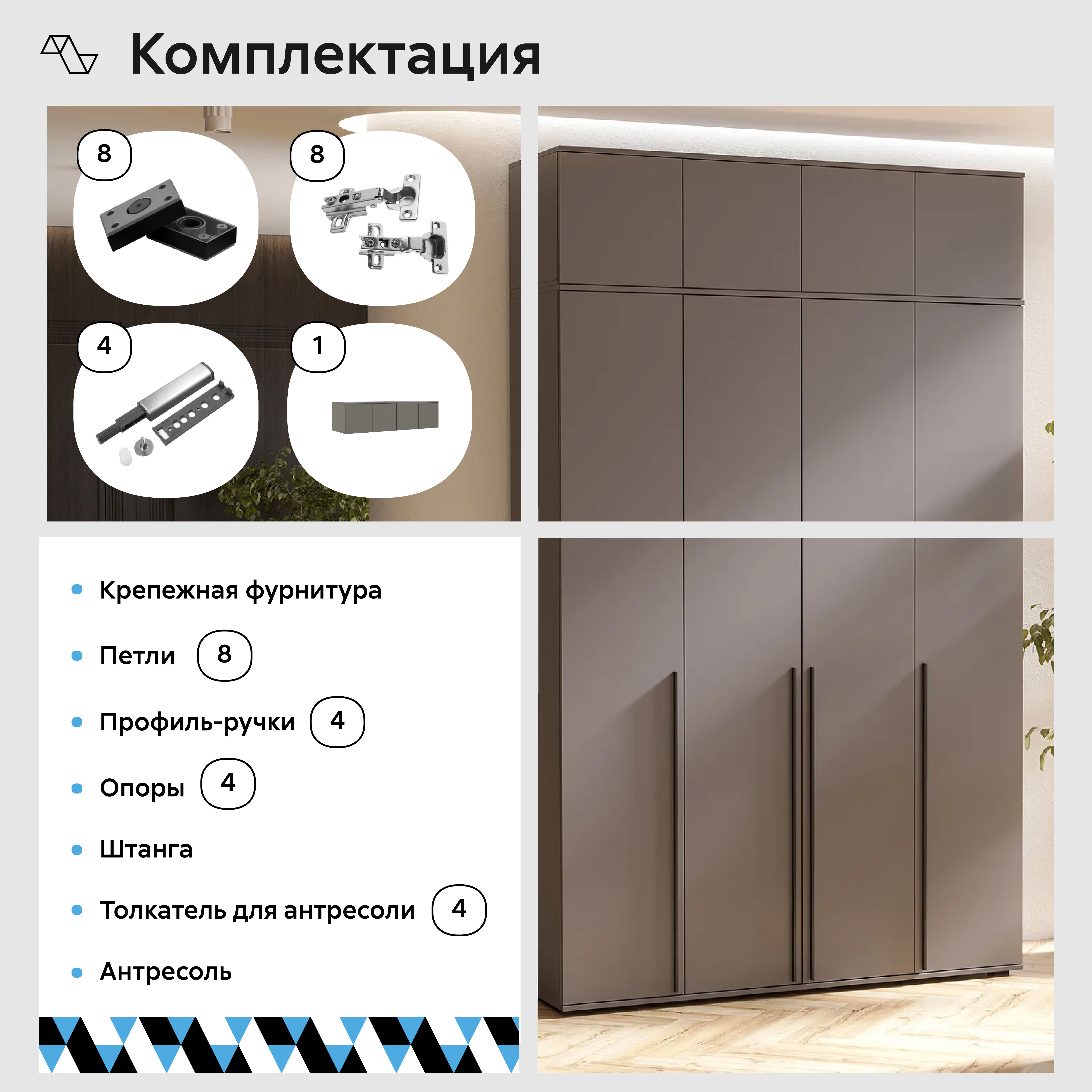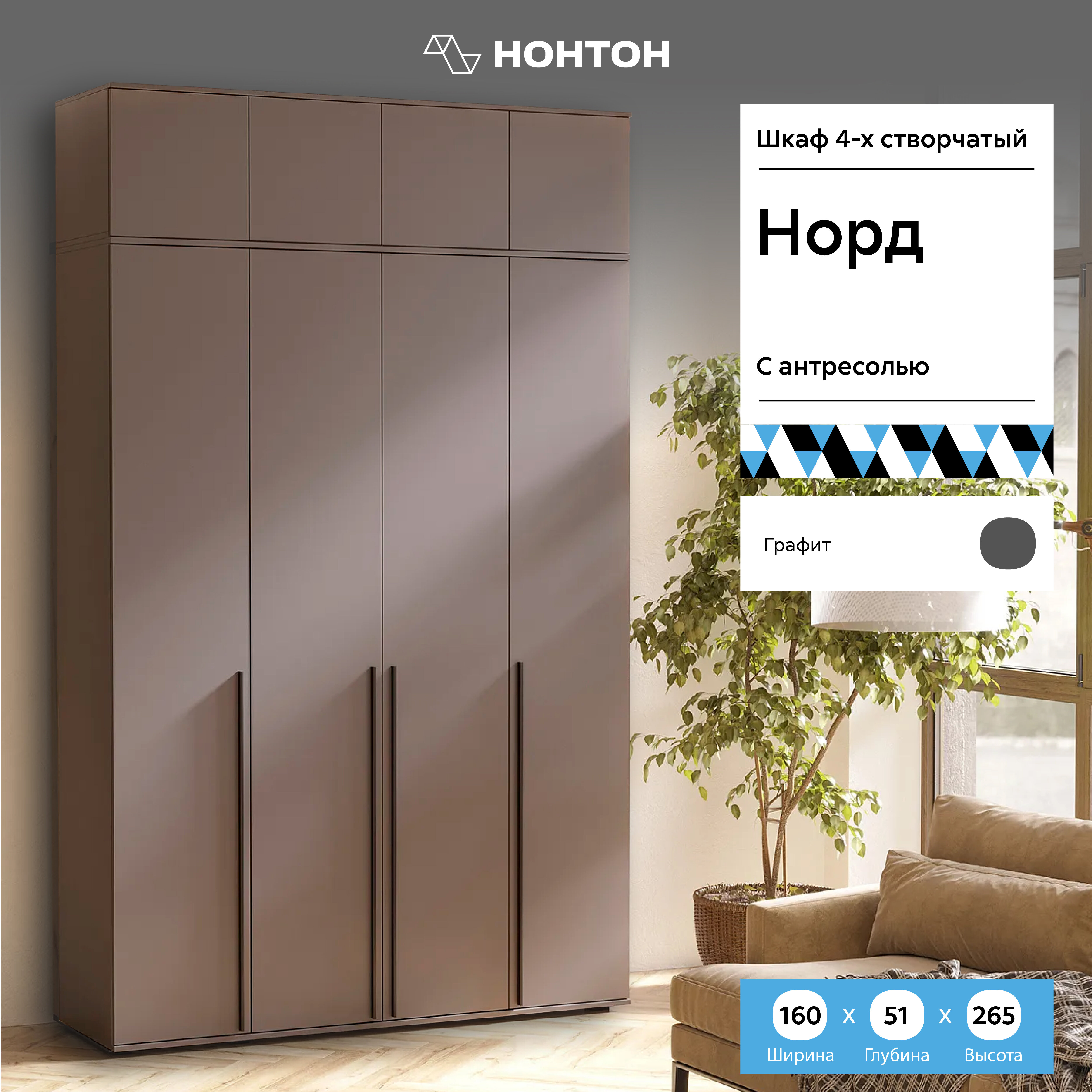 Шкаф Миф Норд 4-х створчатый с антресолью графит, 160x51x265.4 см интересное: