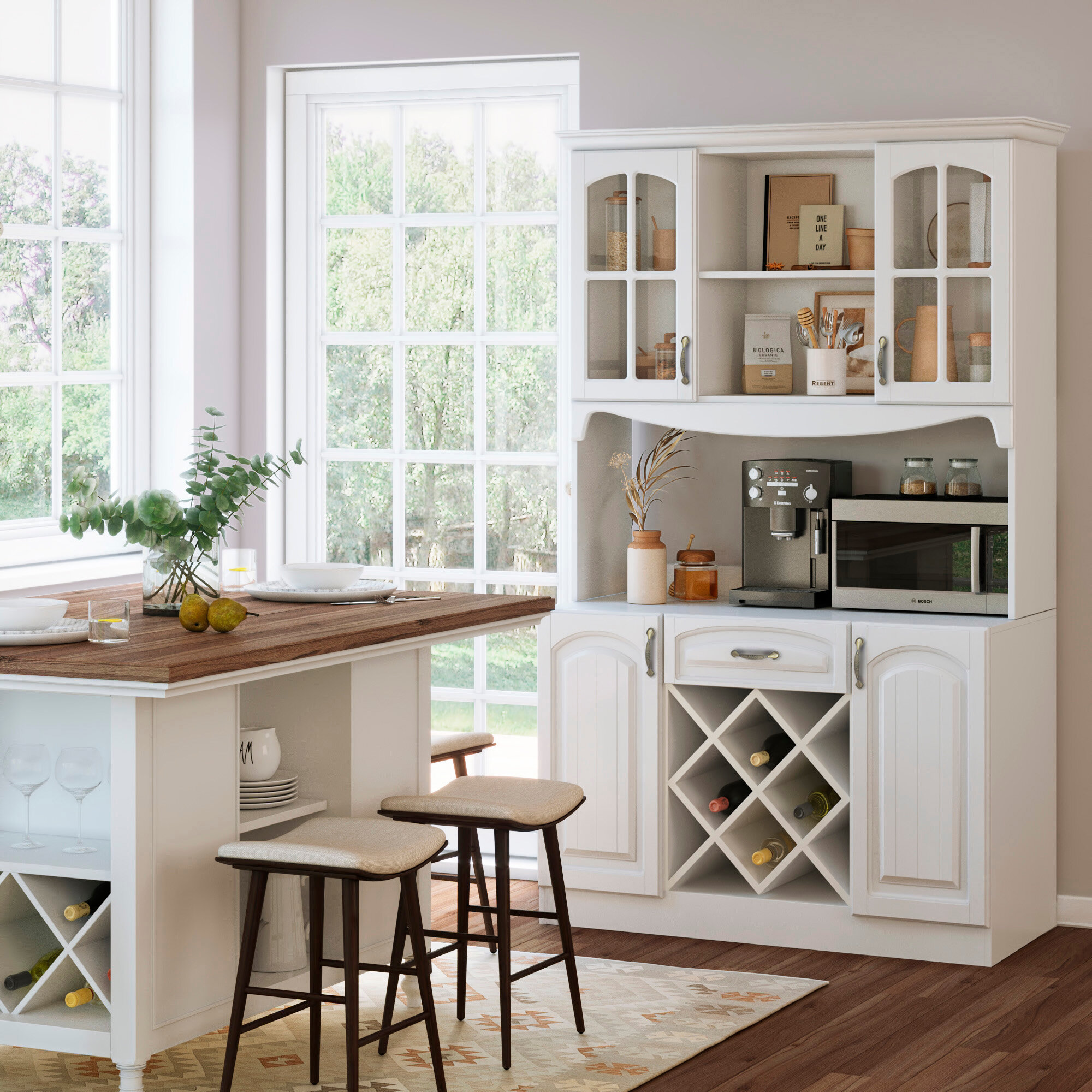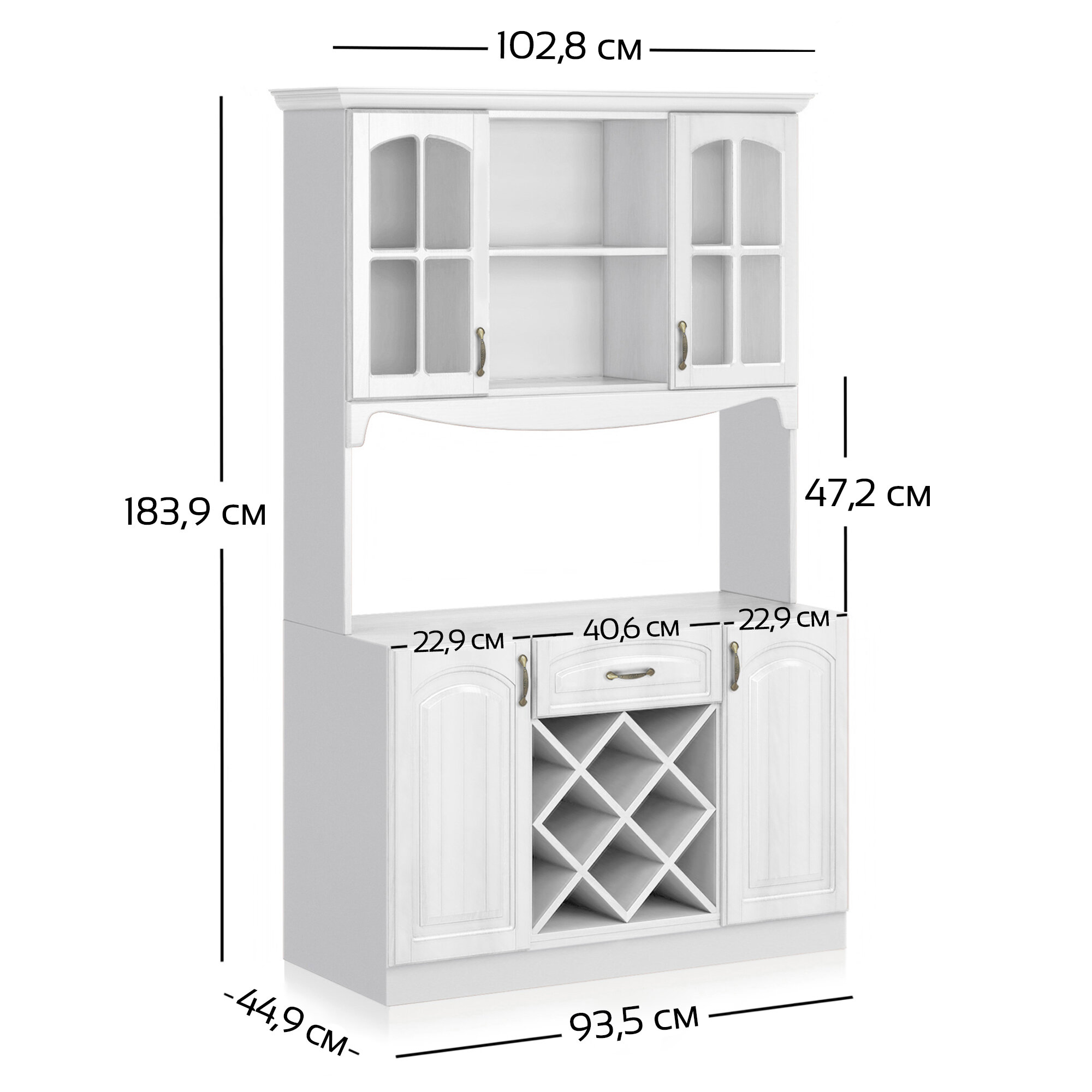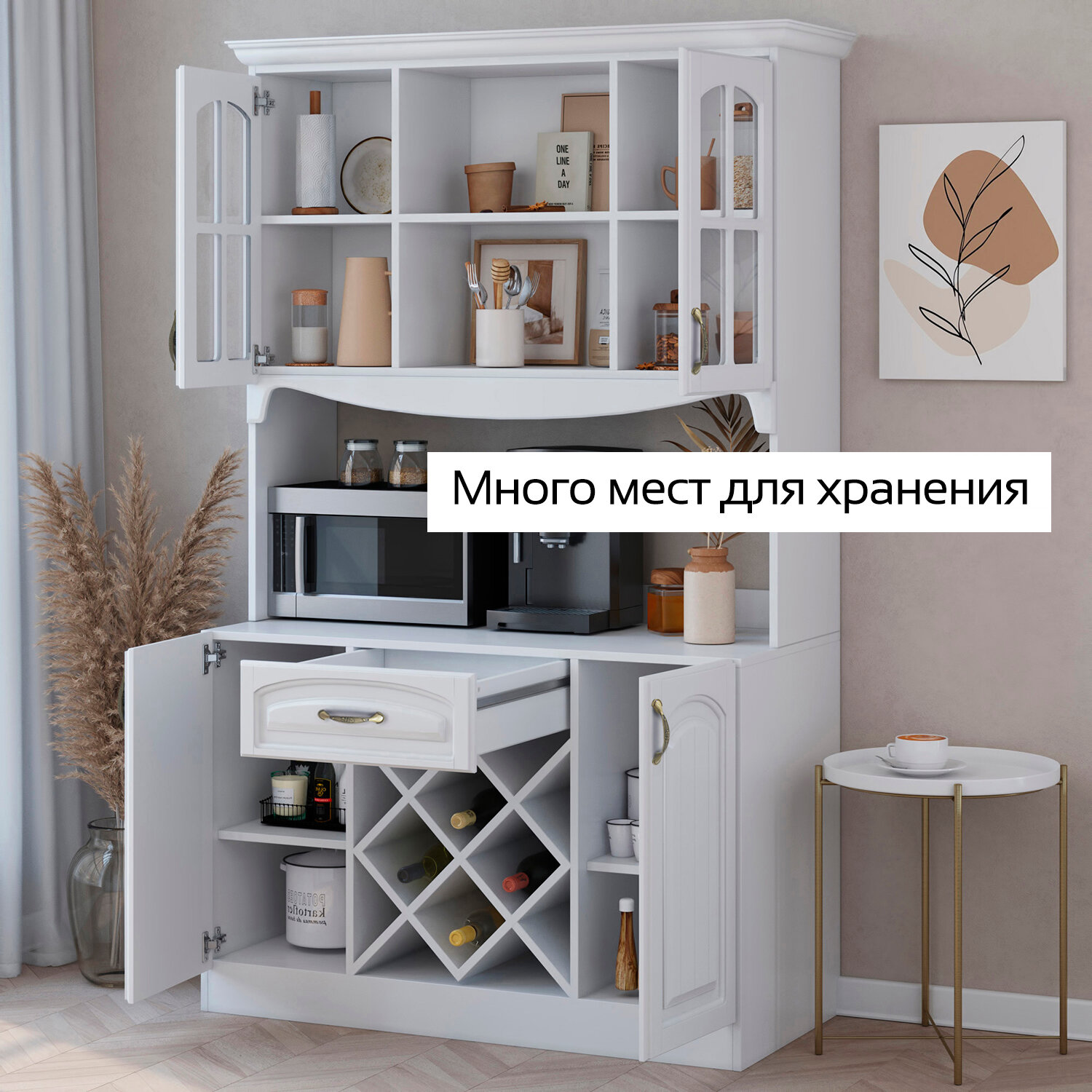 Буфет Puzzlemebel Шкаф-Пенал Галиано Витрина для посуды и микроволновки с бутылочницей белый интересное: