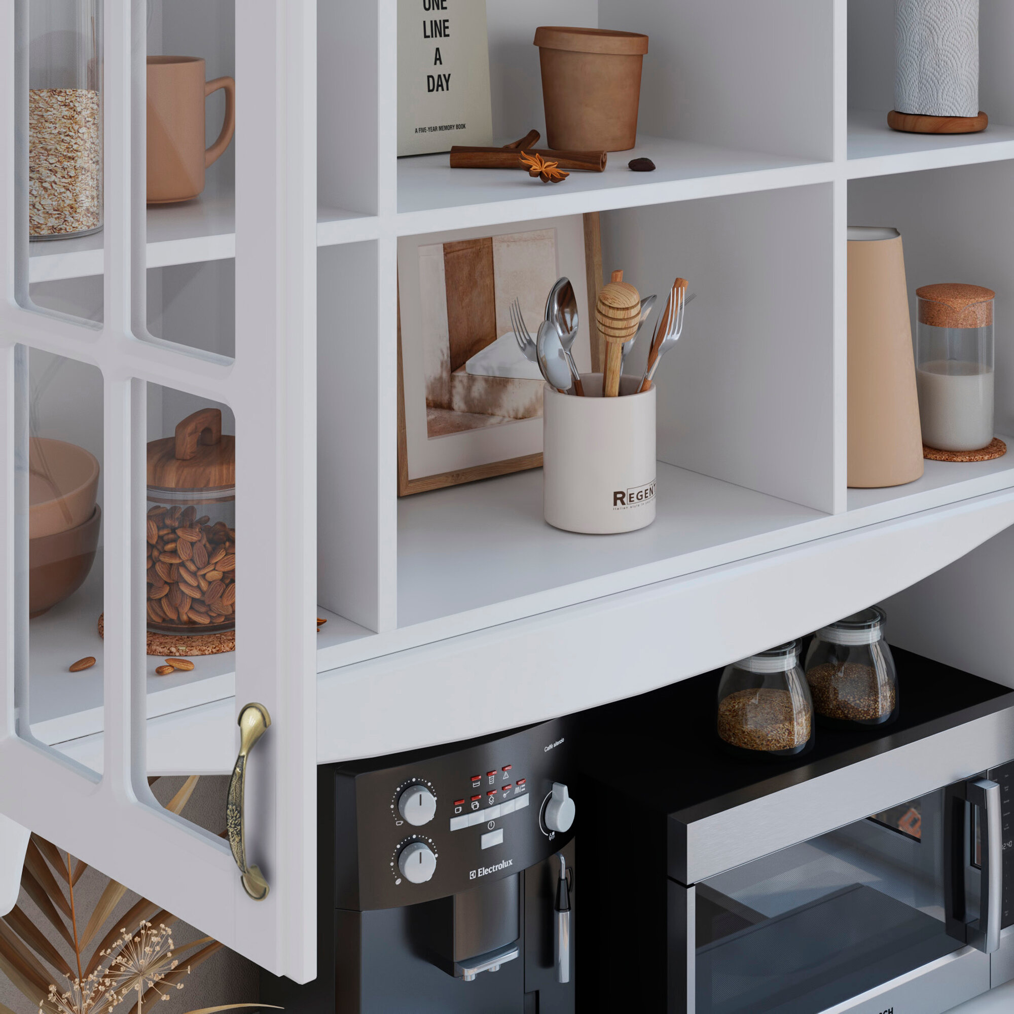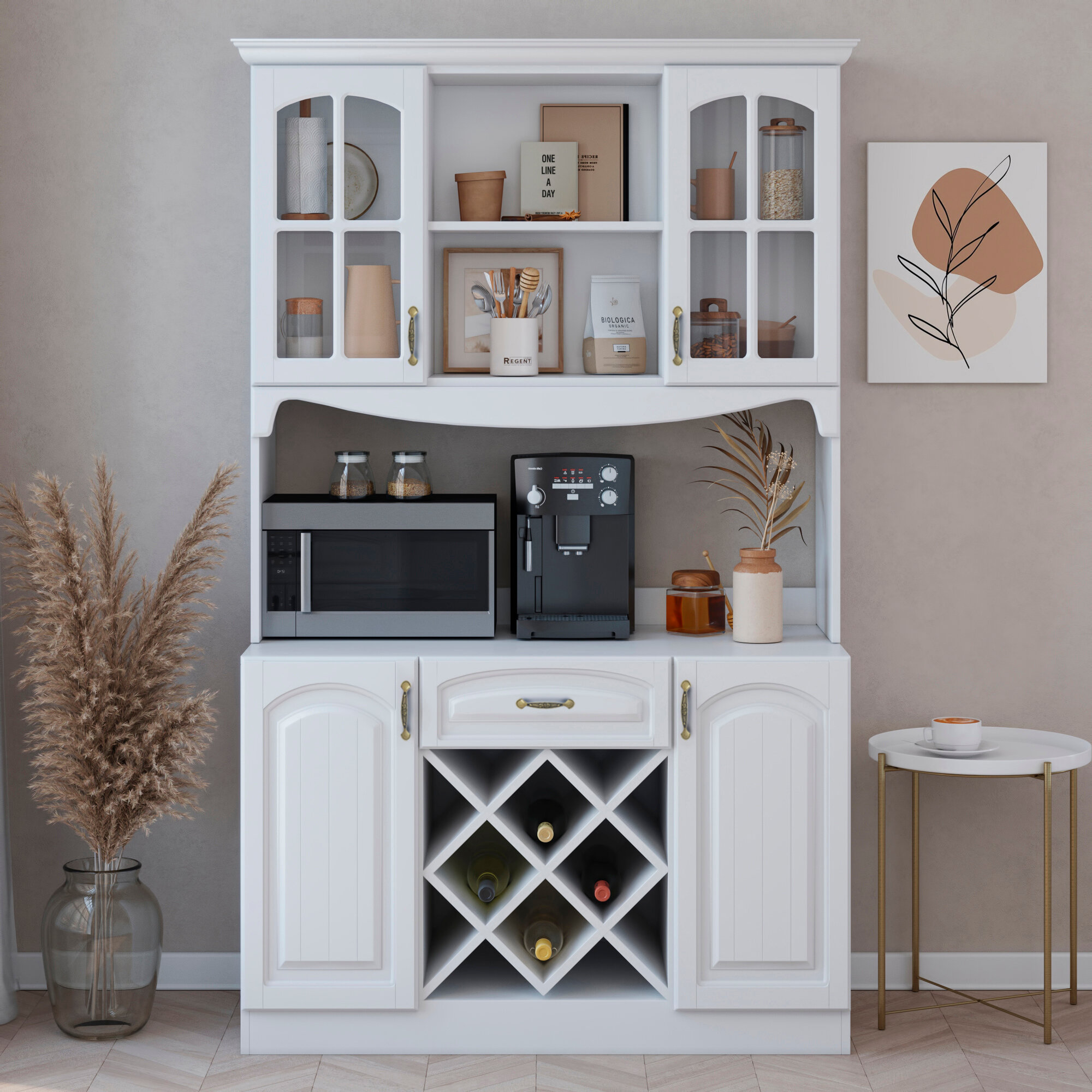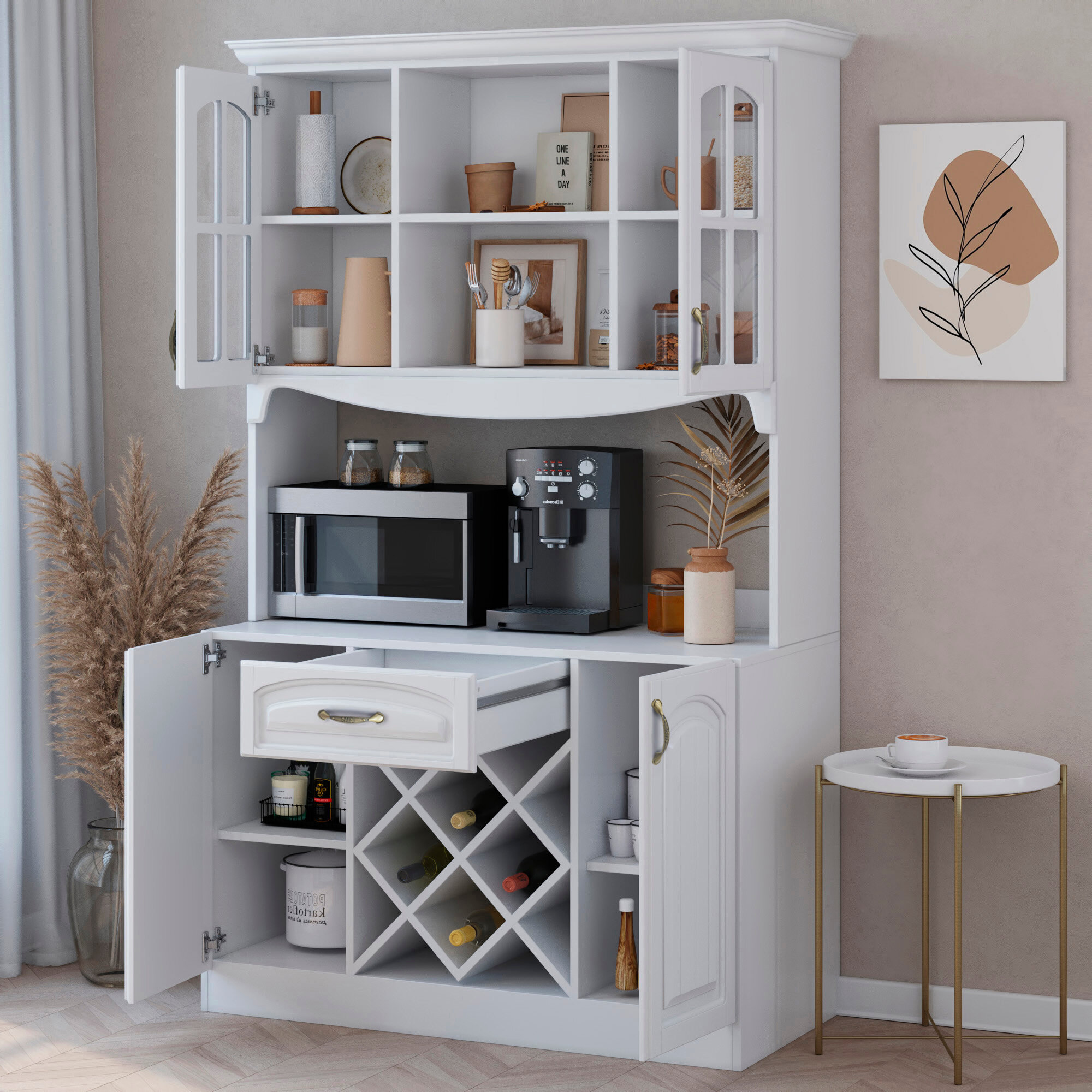 Буфет Puzzlemebel Шкаф-Пенал Галиано Витрина для посуды и микроволновки с бутылочницей белый интересное: