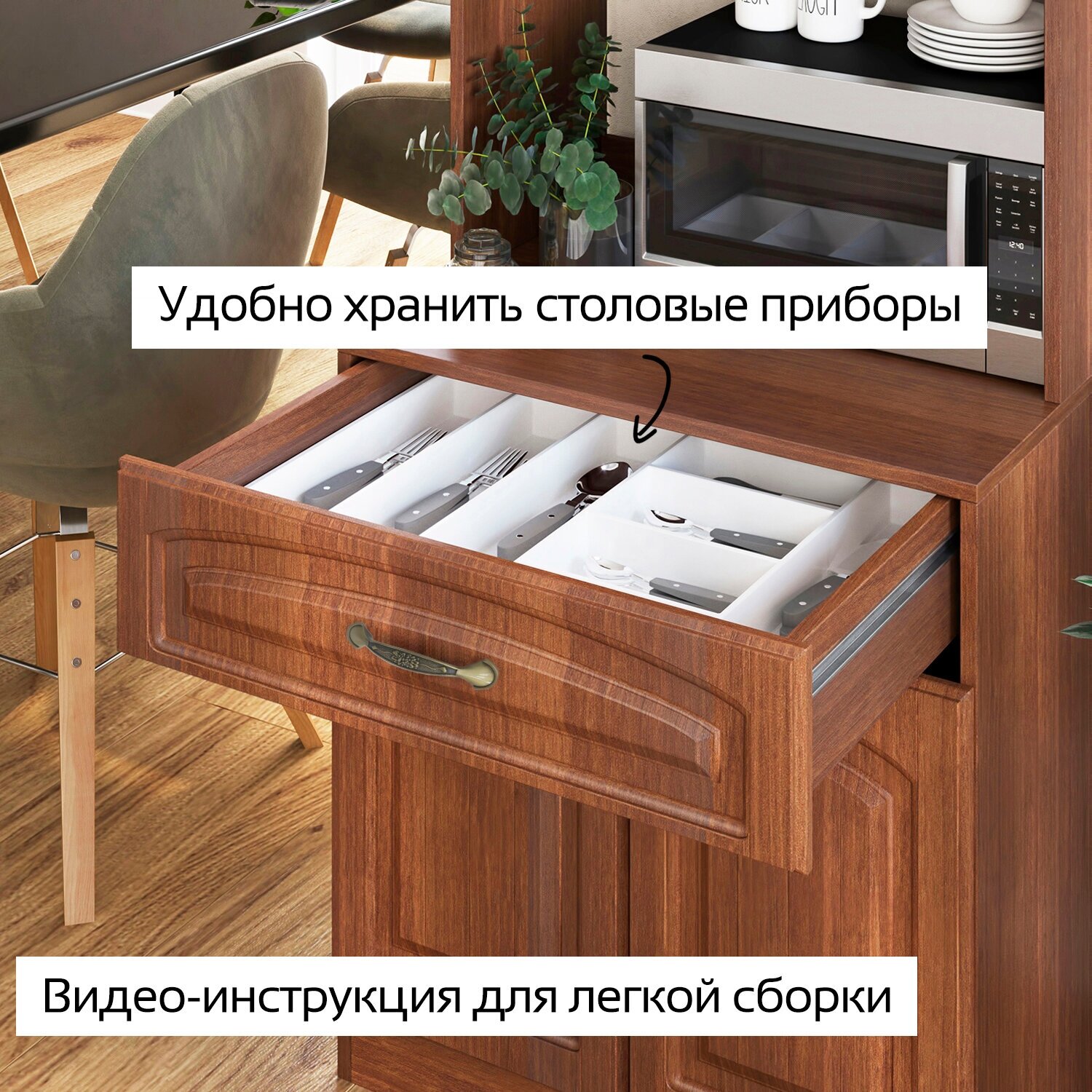 Буфет Puzzlemebel Шкаф-Пенал Галиано Витрина для посуды и микроволновки темная вишня интересное: