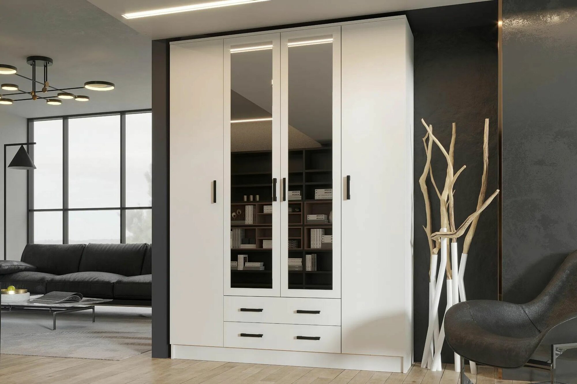 Шкаф четырехдверный Эра Квадро белый 160х48.7х220 см