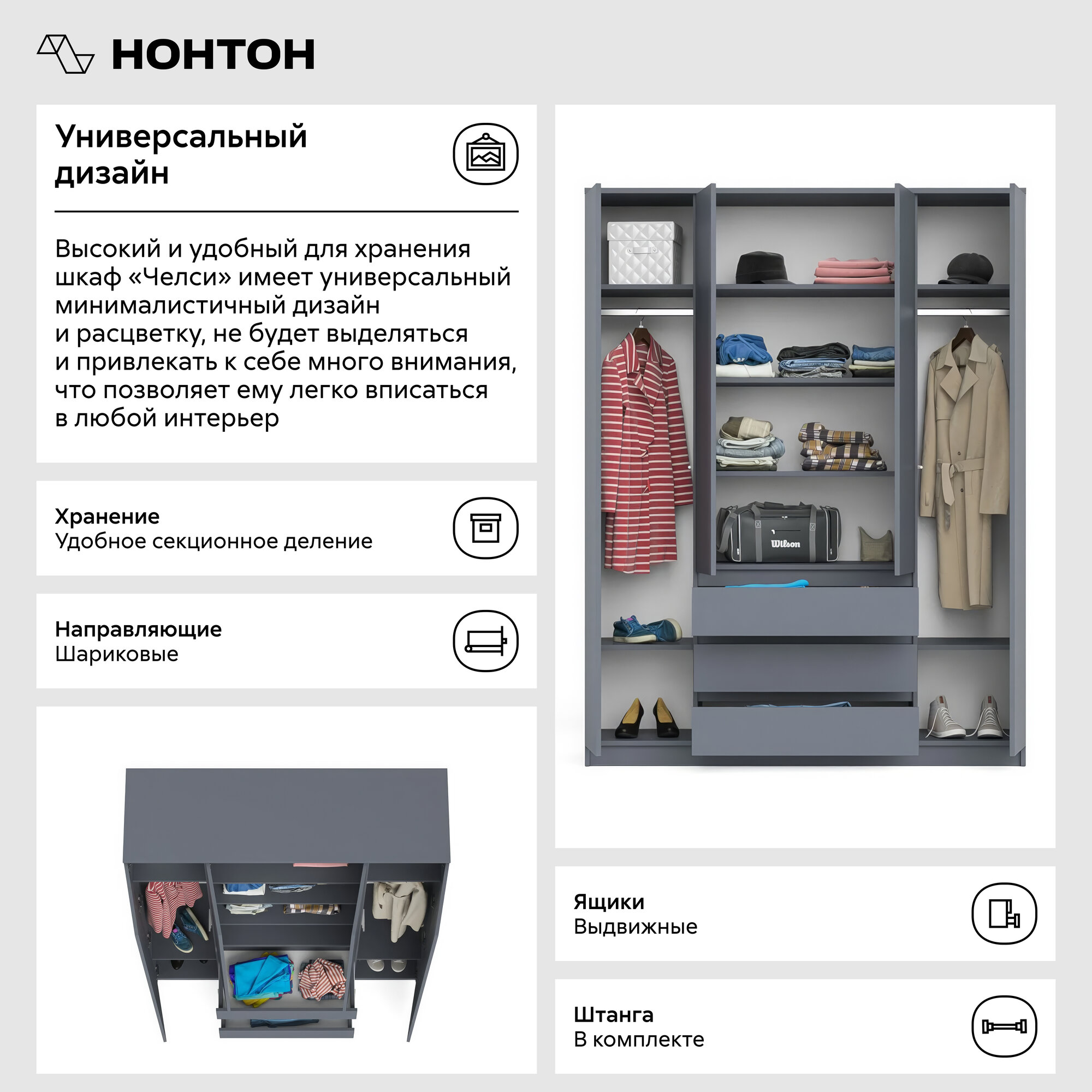Ниже Вы можете прочитать отзывы на Шкаф Челси 1600 графит/графит Миф, ознакомится с подробными характеристиками, посмотреть интересные обзоры и фотографии на Шкаф Челси 1600 графит/графит Миф.