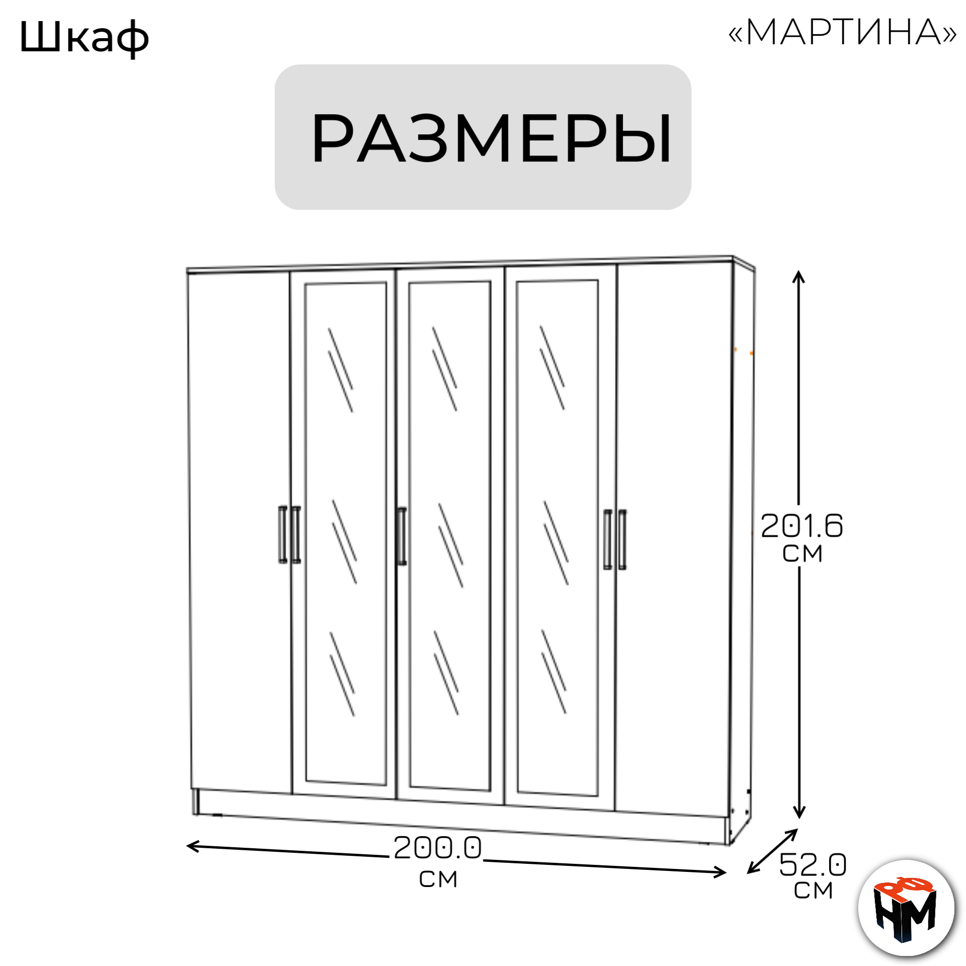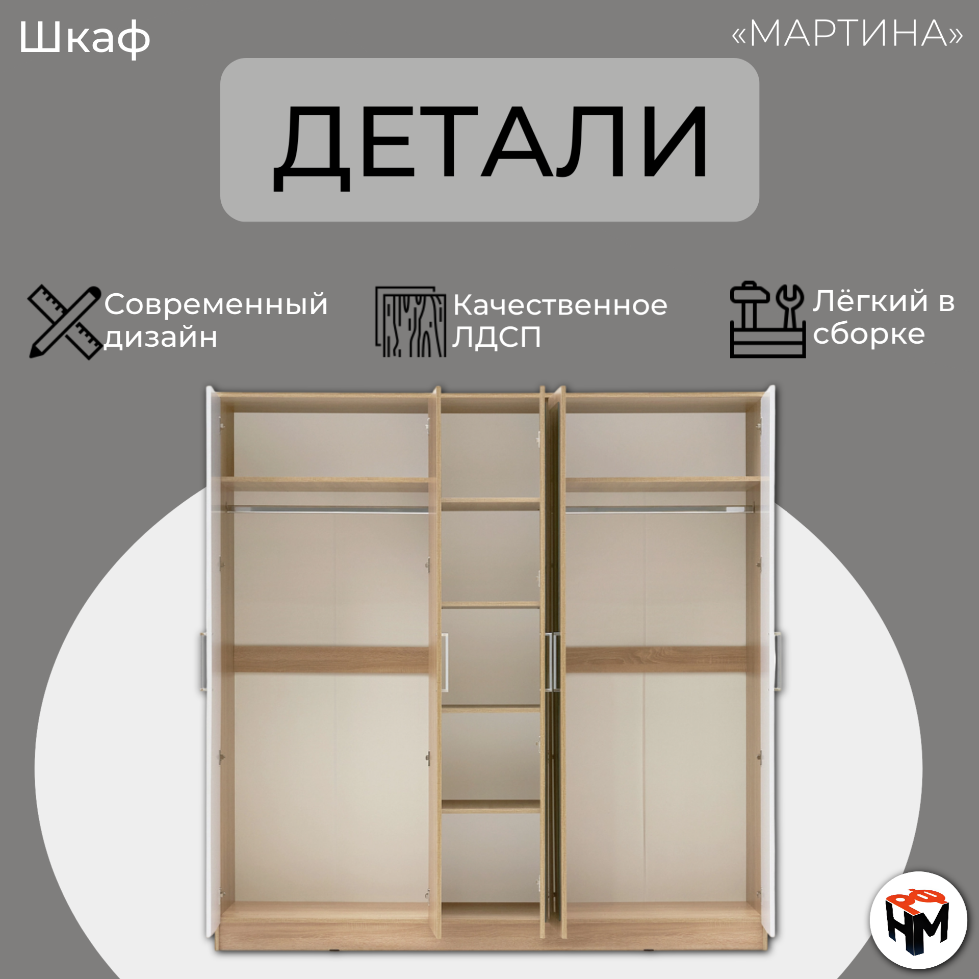 СохранитьШкаф для одежды 5-дверный Мартина с зеркалом Белый, Сонома ЛДСП интересное: