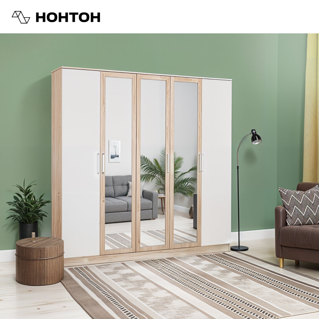 Купить Шкаф для одежды 5-дверный Мартина с зеркалом Белый, Сонома ЛДСП