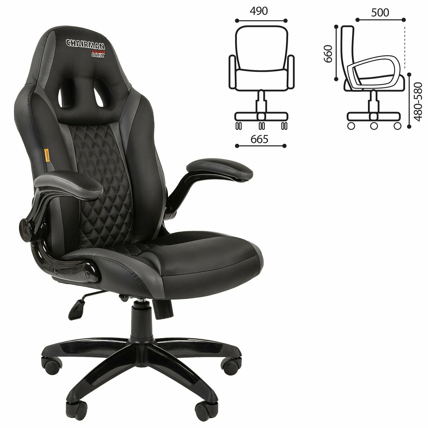 Игровое компьютерное кресло с откидными подлокотниками CHAIRMAN GAME 15, экокожа, черный/серый
