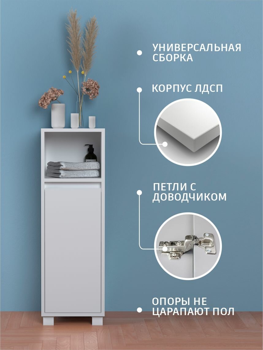 Купить Шкаф-пенал В-1 для ванной комнаты , 30x30x93 см, белый