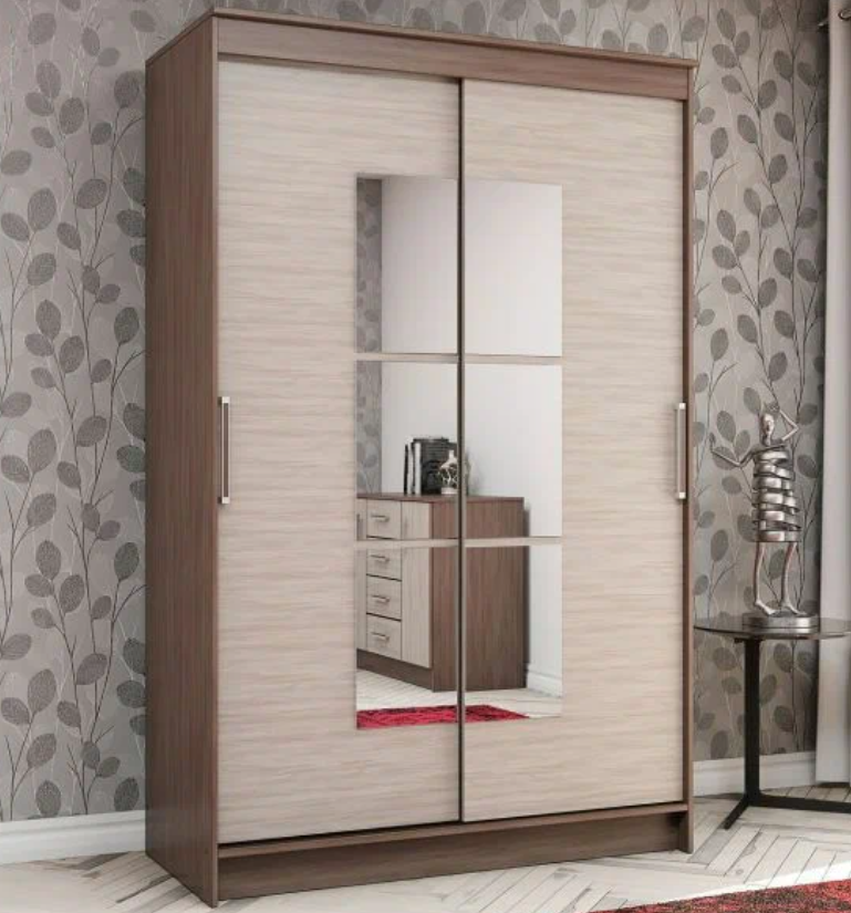 Первый Мебельный Шкаф-купе для одежды Сонет 4 двухдверный, с зеркалом, с полками, 126х59х200 см, Венге / Лоредо