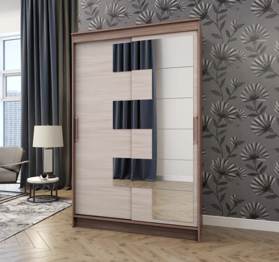 Шкаф-купе для одежды Сонет 1 двухдверный, с зеркалом, 126х59х200 см, Ясень Шимо светлый / Ясень Шимо темный