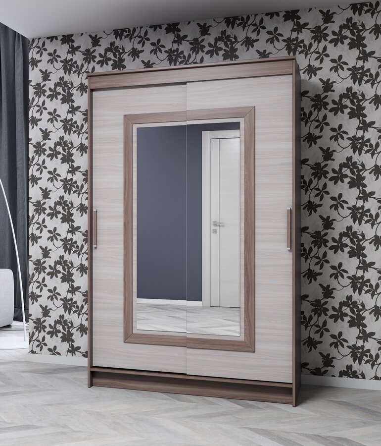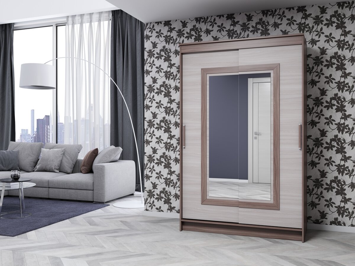 Шкаф-купе для одежды Сонет 1 двухдверный, с зеркалом, 126х59х200 см, Ясень Шимо светлый / Ясень Шимо темный