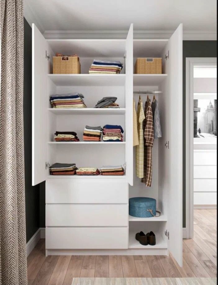 Шкаф для одежды распашной Нонтон Луас, 120 см, 7 полок и штанга, белый глянец