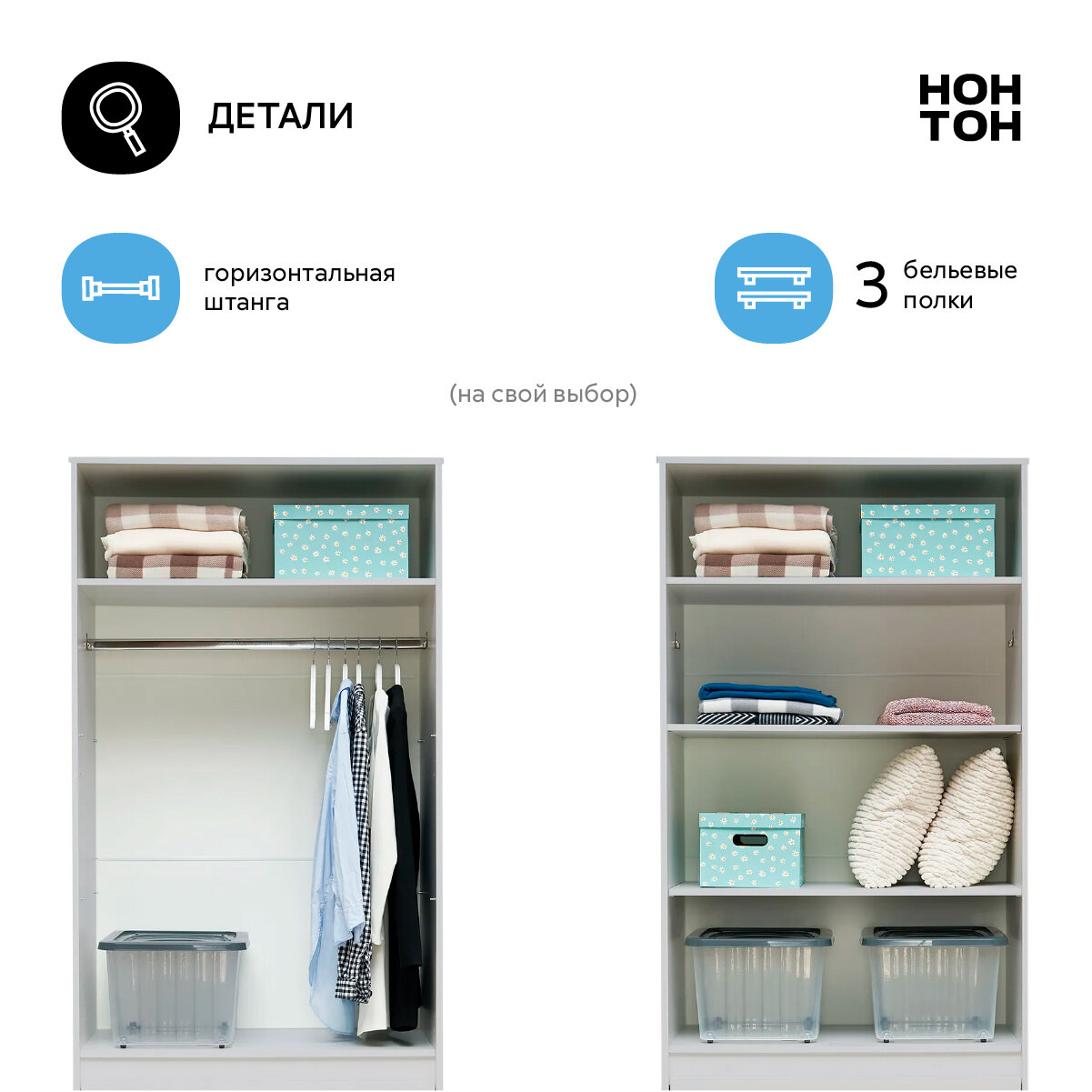 Шкаф для одежды распашной Нонтон Луас, 120 см, 7 полок и штанга, белый глянец