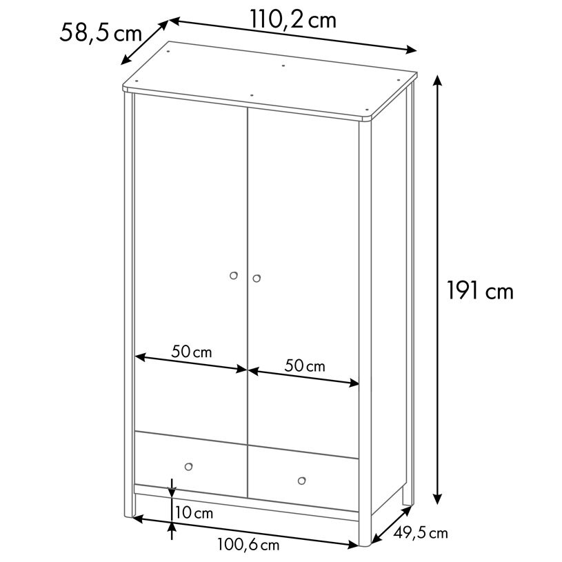 Купить Шкаф двухсекционный Polini kids Simple 3510, с ящиками, белый-натуральный
