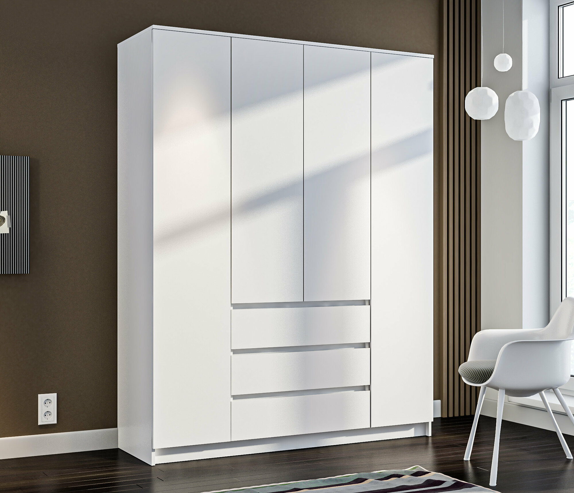 Шкаф четырехдверный столплит Леон СБ-3364/1 с ящиками, для хранения вещей, кдсп, белый, 156х202х52 см интересное: