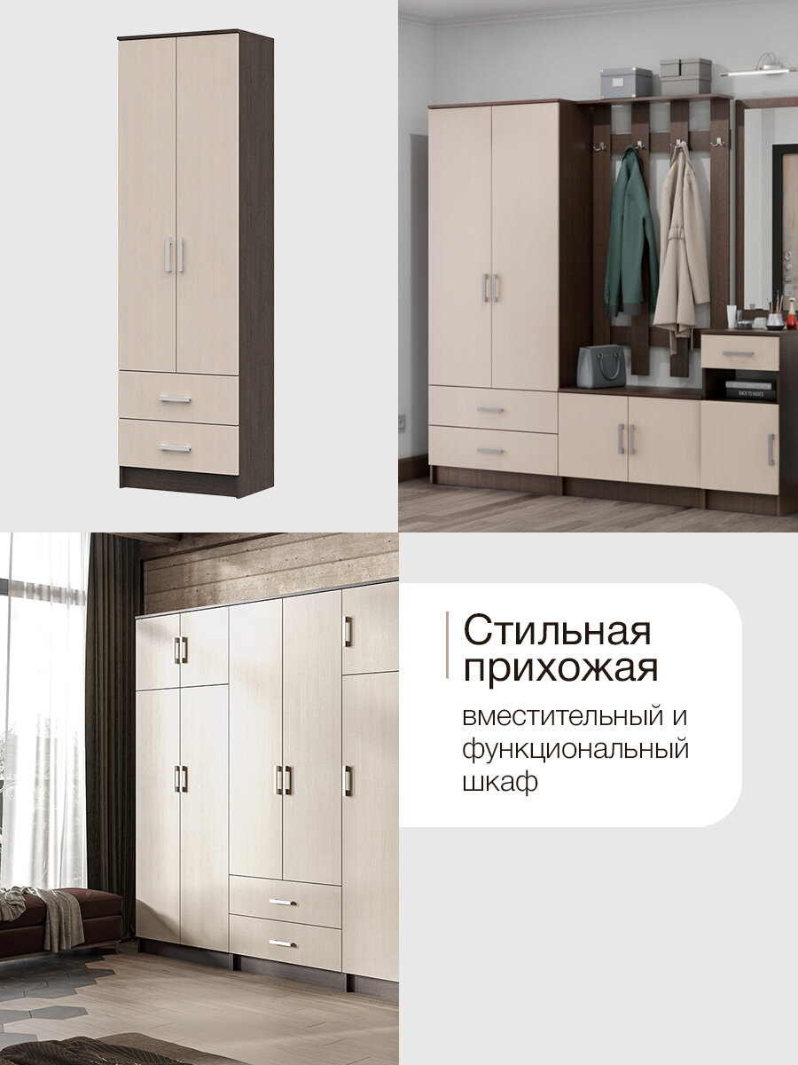 Шкаф для одежды с полками и ящиками ШК-202 Машенька Венге / Дуб белфорт