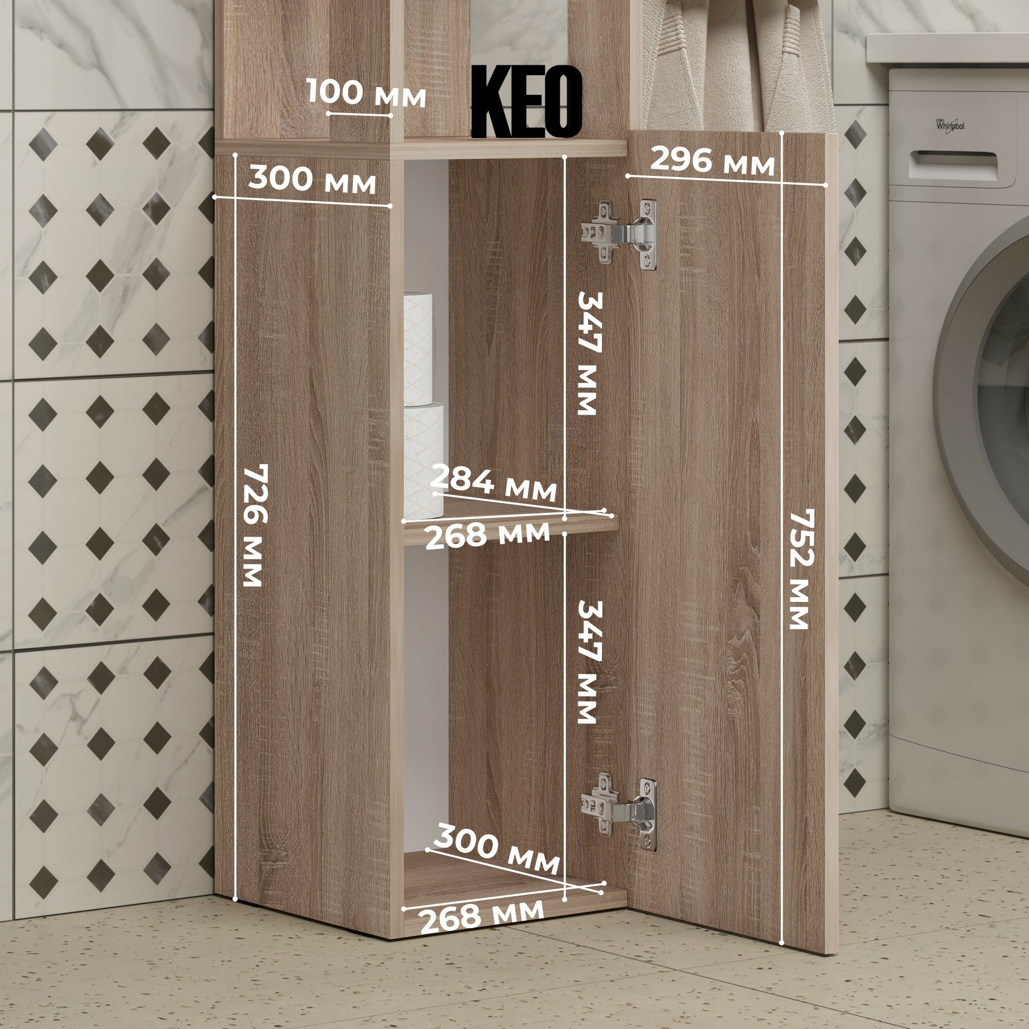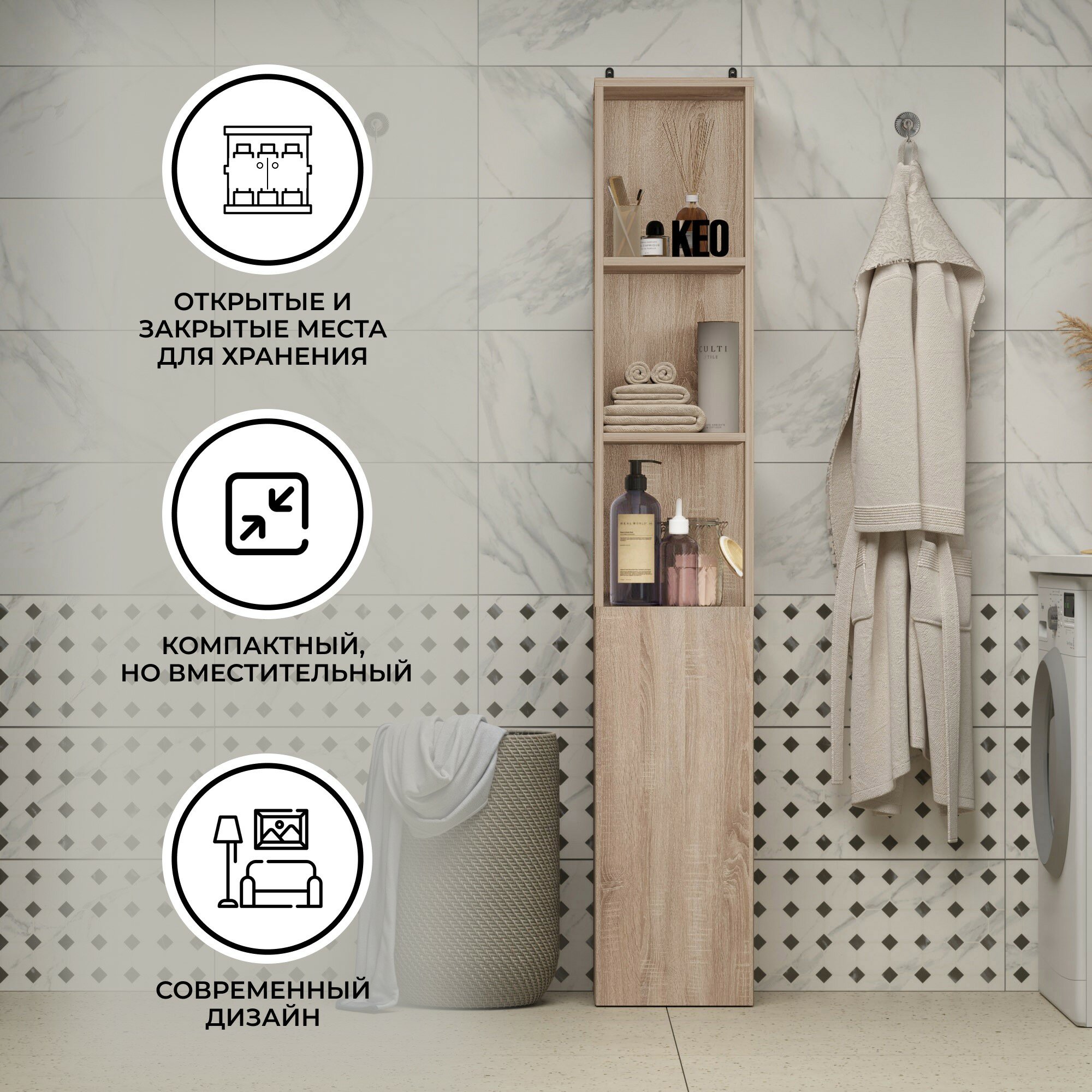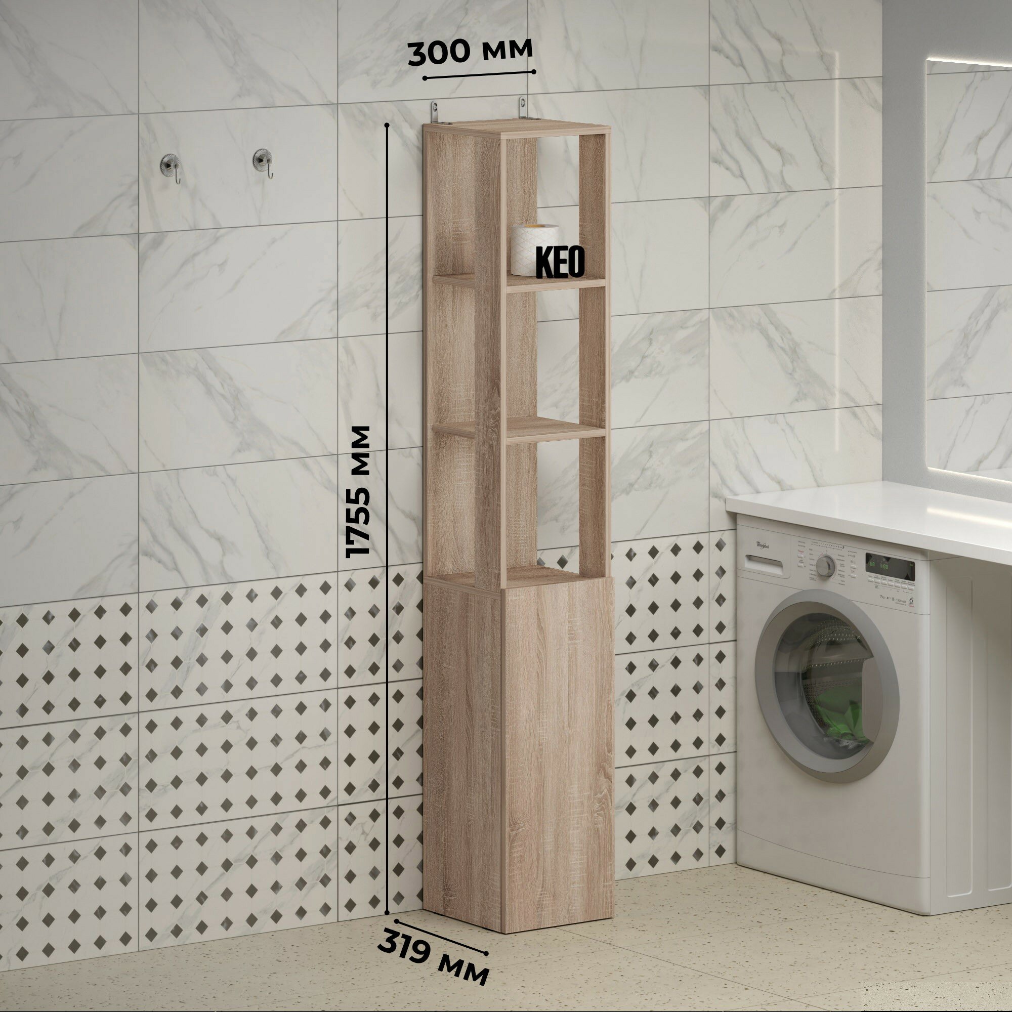 Купить Шкаф стеллаж пенал высокий напольный Кео ШКН-268 дуб сонома в ванную прихожую спальню детскую 1755х319х300 мм