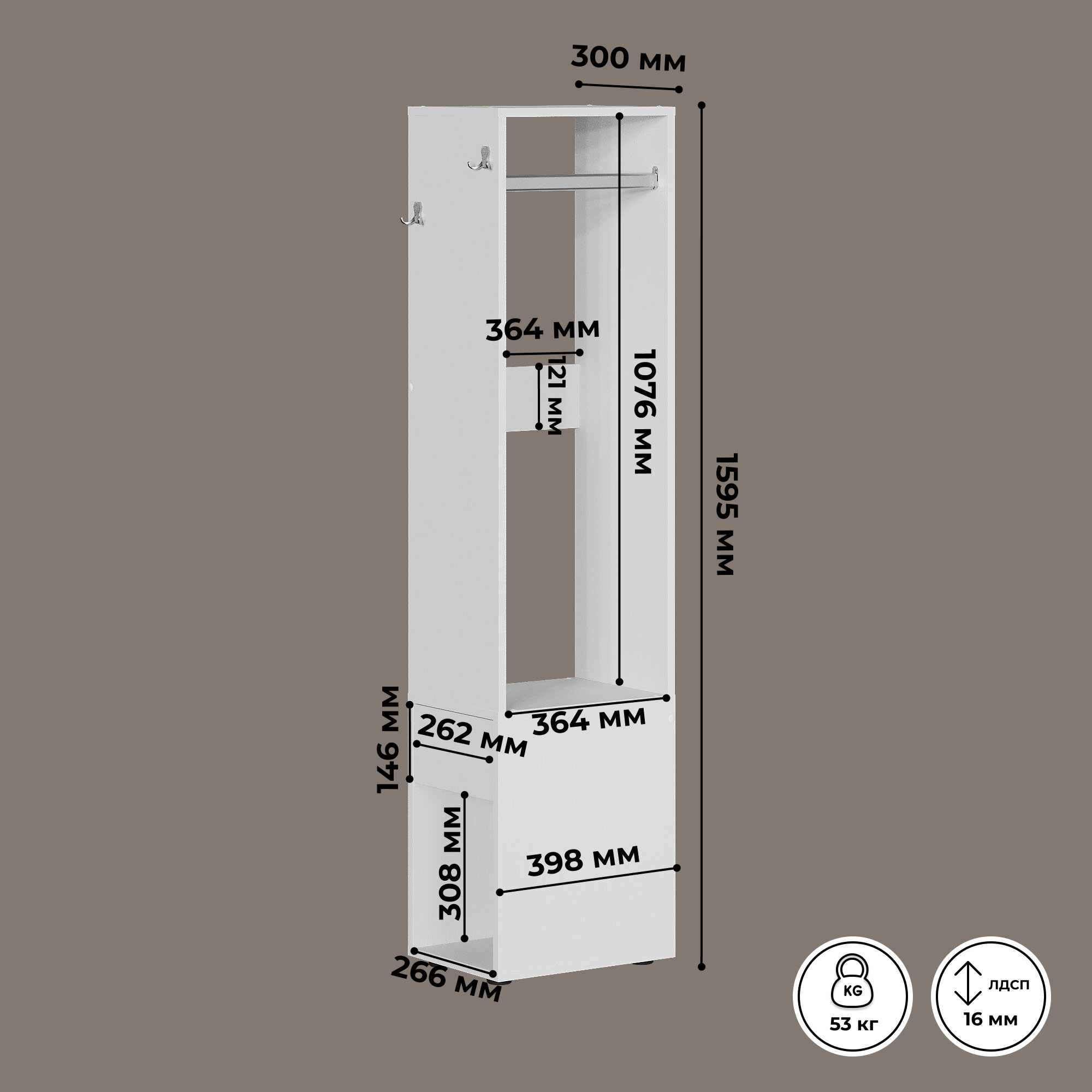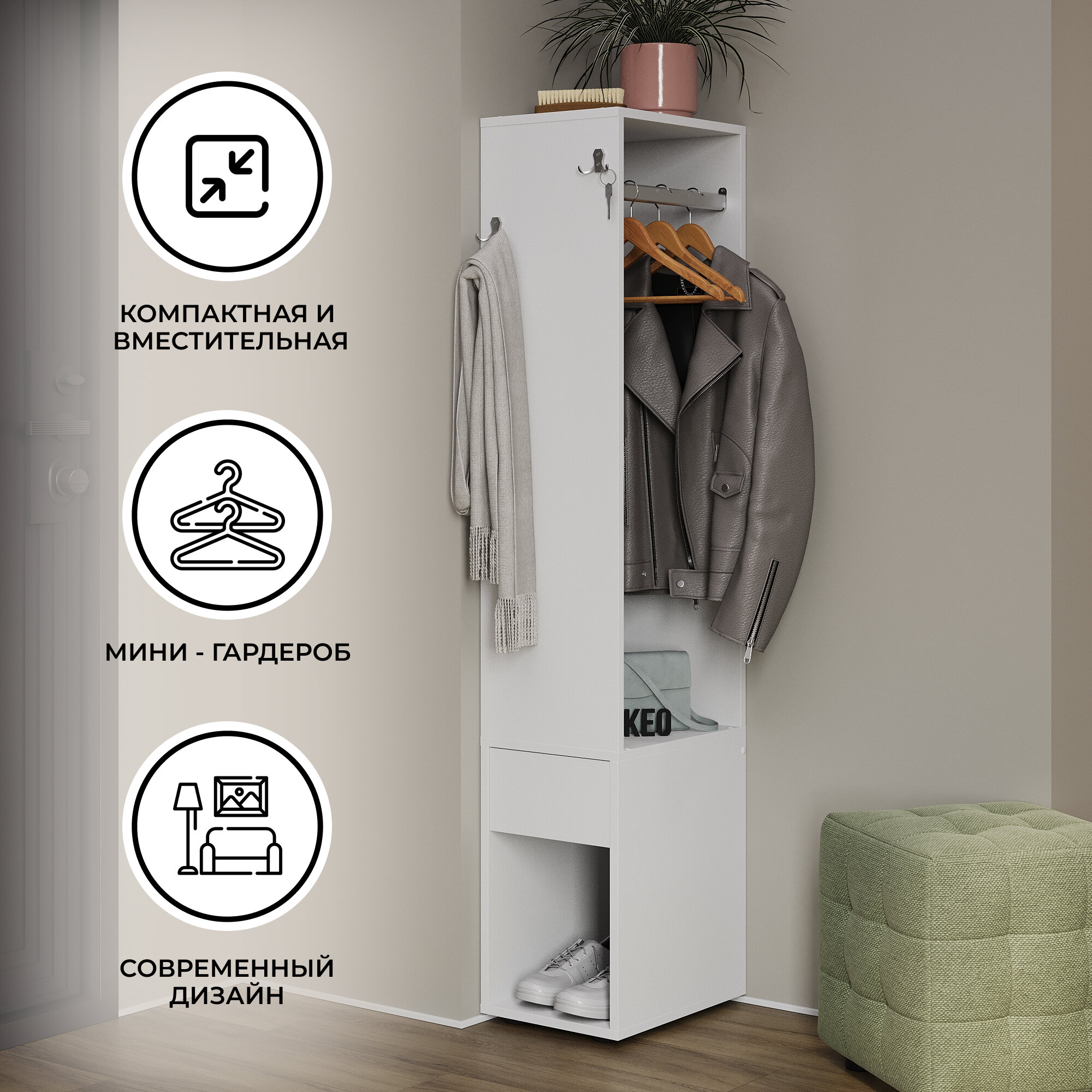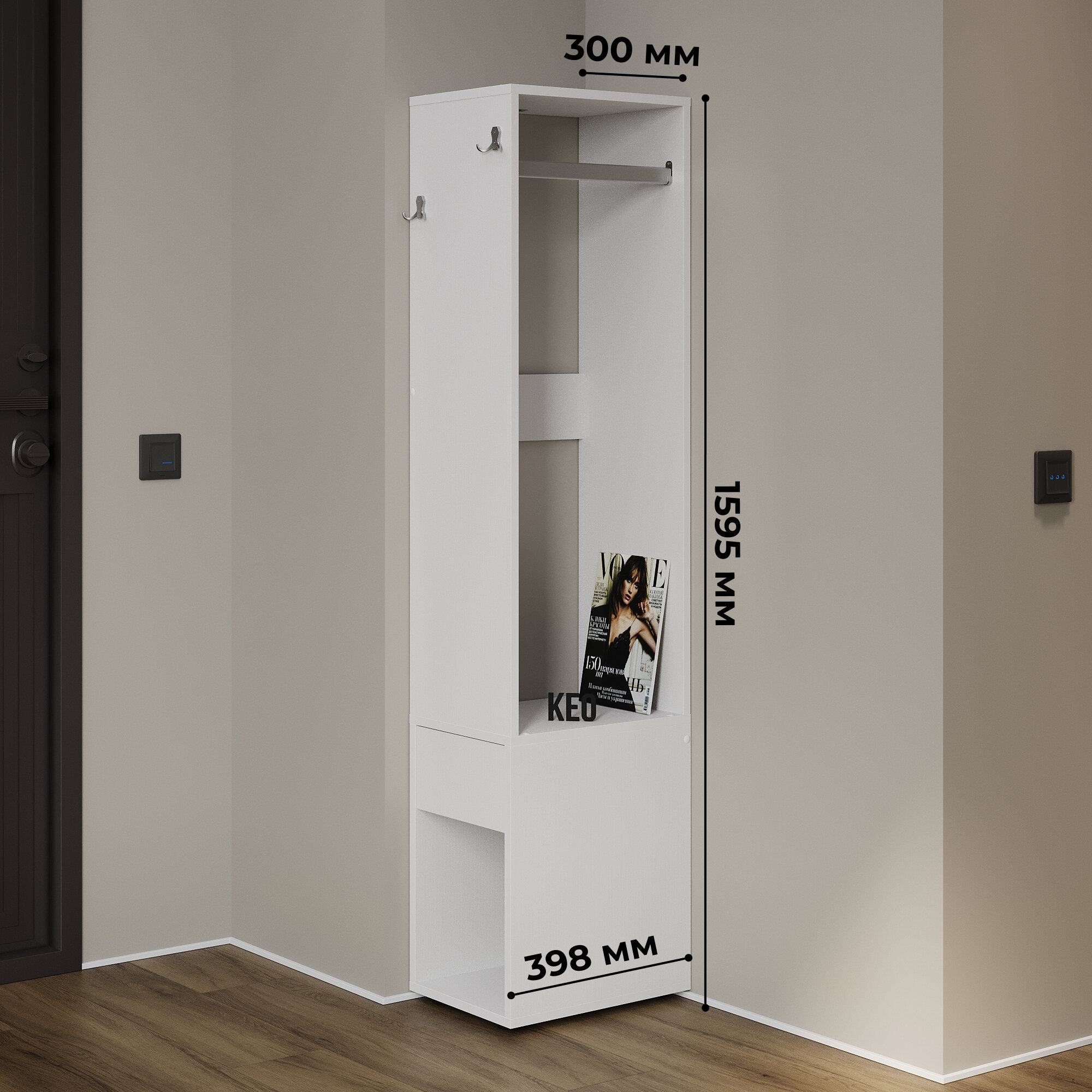 Шкаф стеллаж пенал высокий напольный Кео ШКН-268 белый в ванную прихожую спальню детскую 1755х319х300 мм