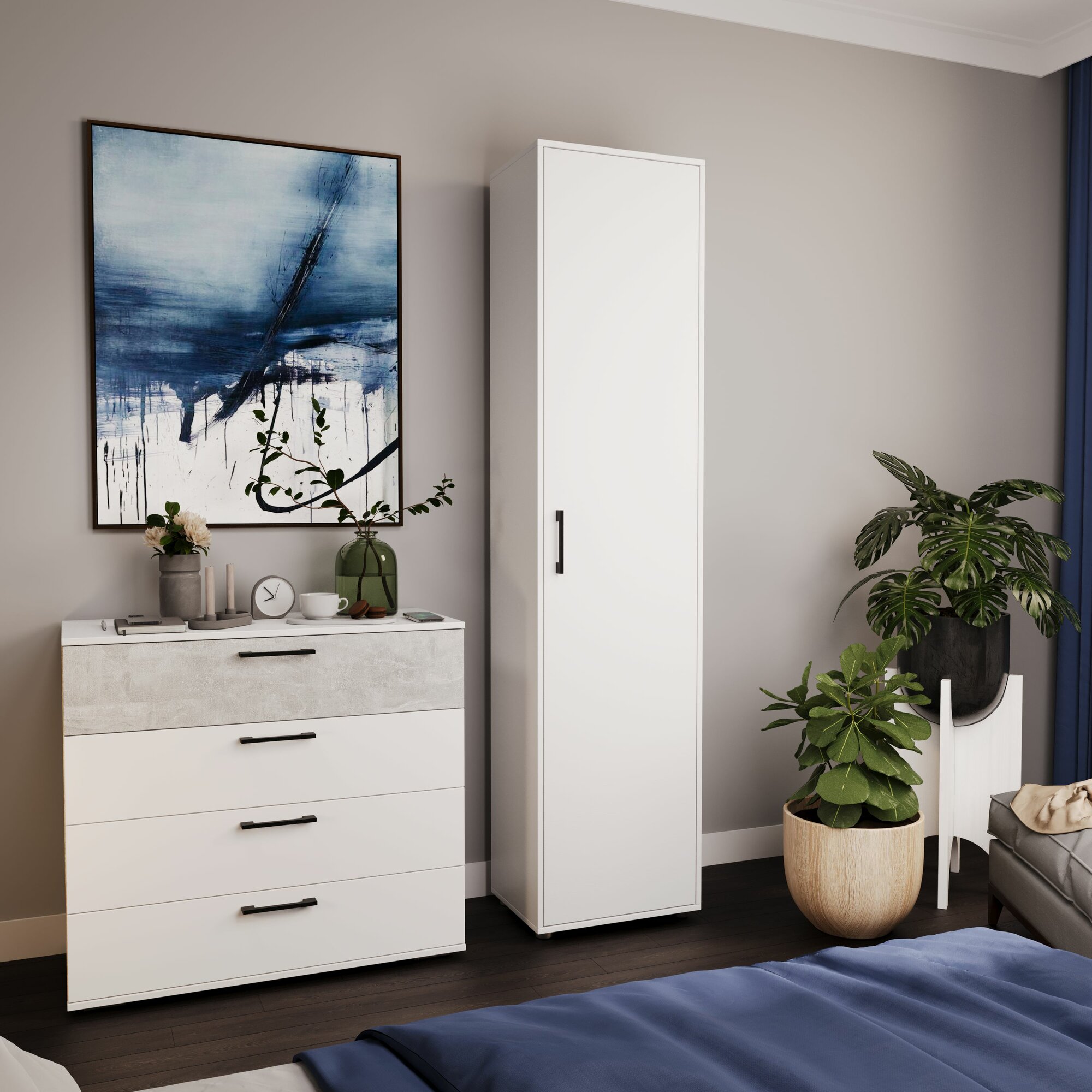 Шкаф для одежды белый узкий распашной (ВхШхГ) 204х48х36 см, Витра интересное:
