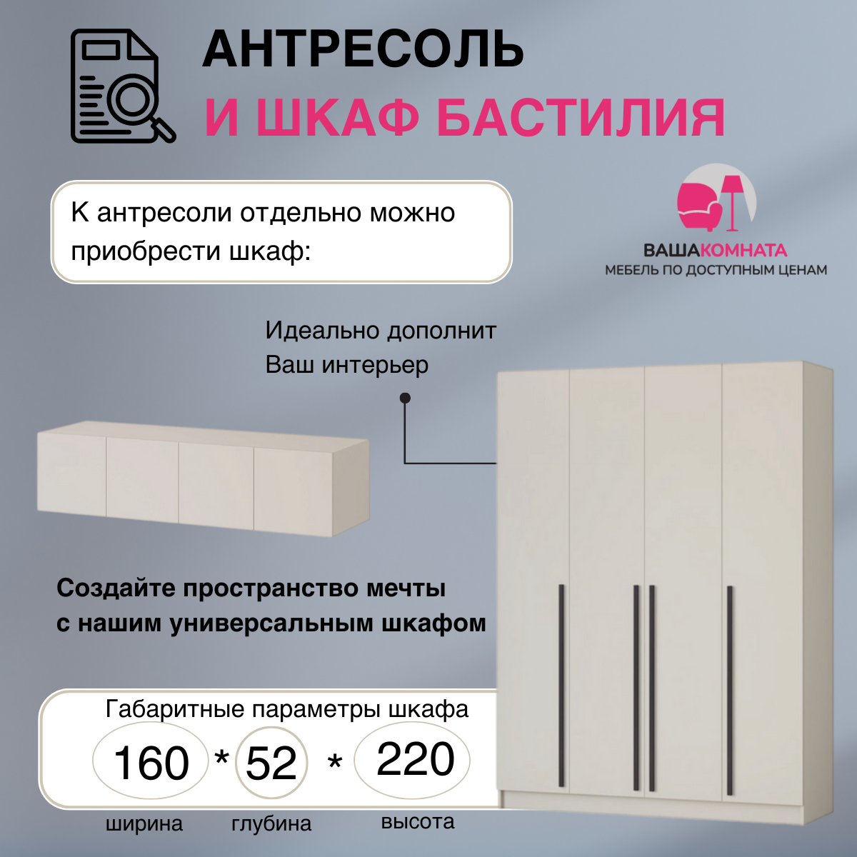 Шкаф распашной с антресолью Бастион 80 кашемир