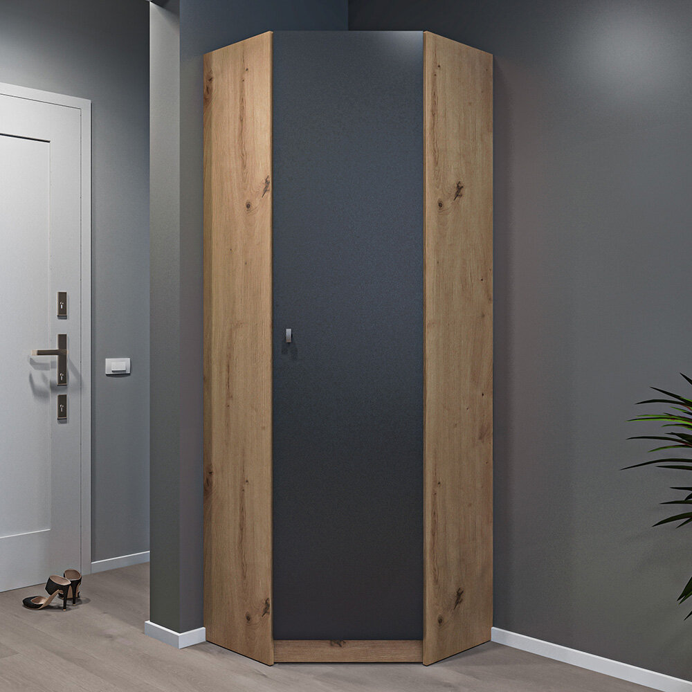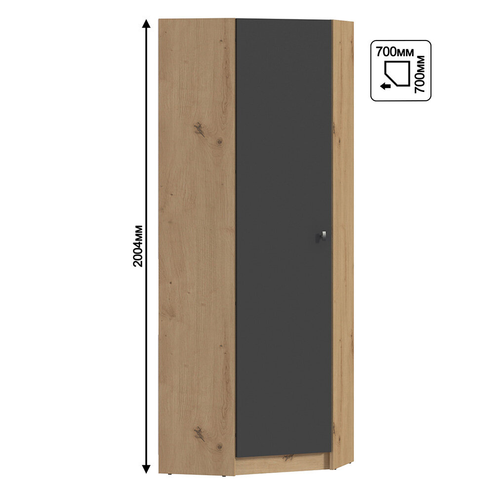 Угловой шкаф столплит Сидней СБ-2589 со штангой, с полкой, для хранения вещей, одежды, обуви, инвентаря, в гостиную, в спальню, в детскую, в прихожую, на дачу ДСП Дуб дикий/диамант серый, 70х200х70 см интересное: