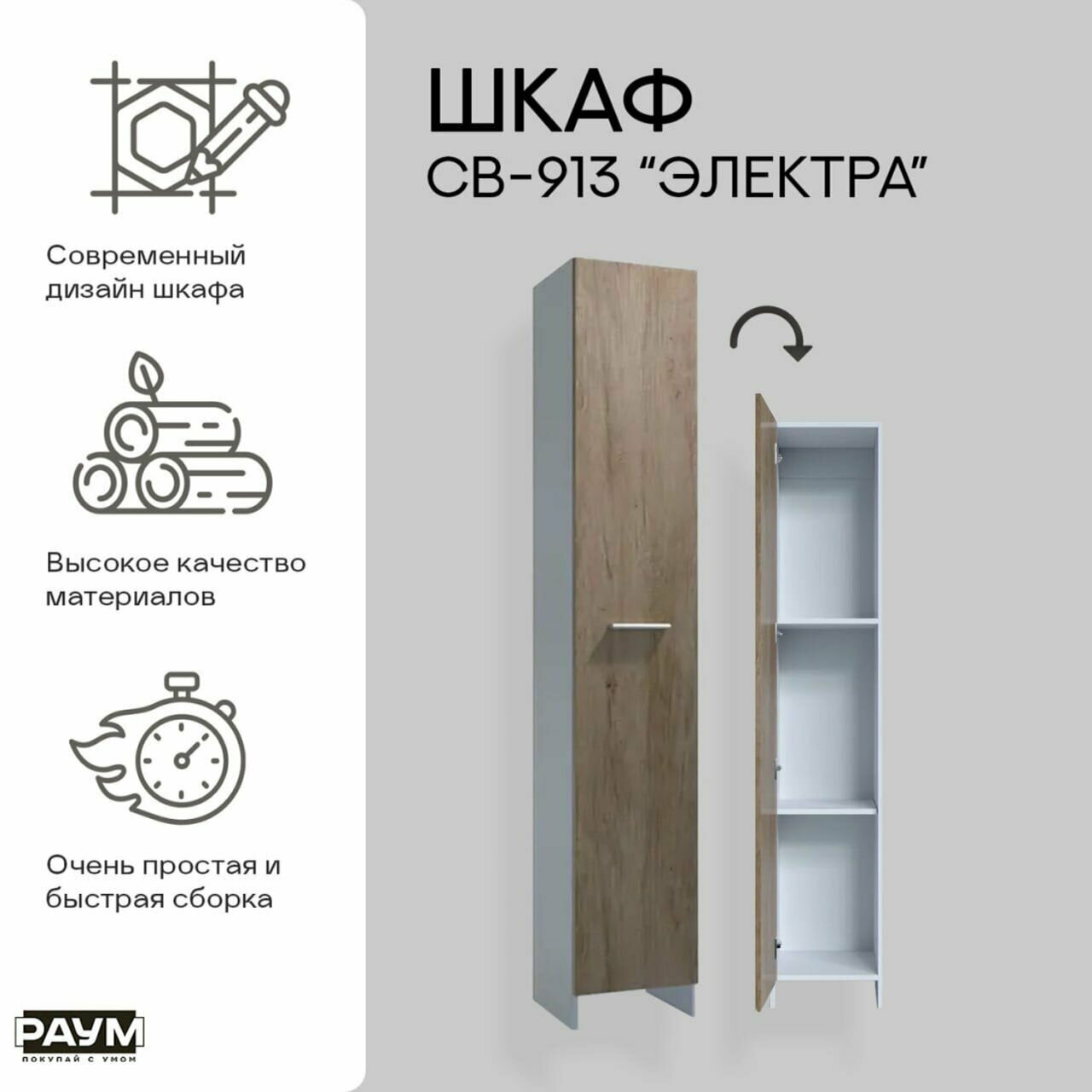 Раум покупай с умом / Шкаф-пенал для ванны с ящиком и закрытыми полками СВ-912 Электра, 330х330х1700