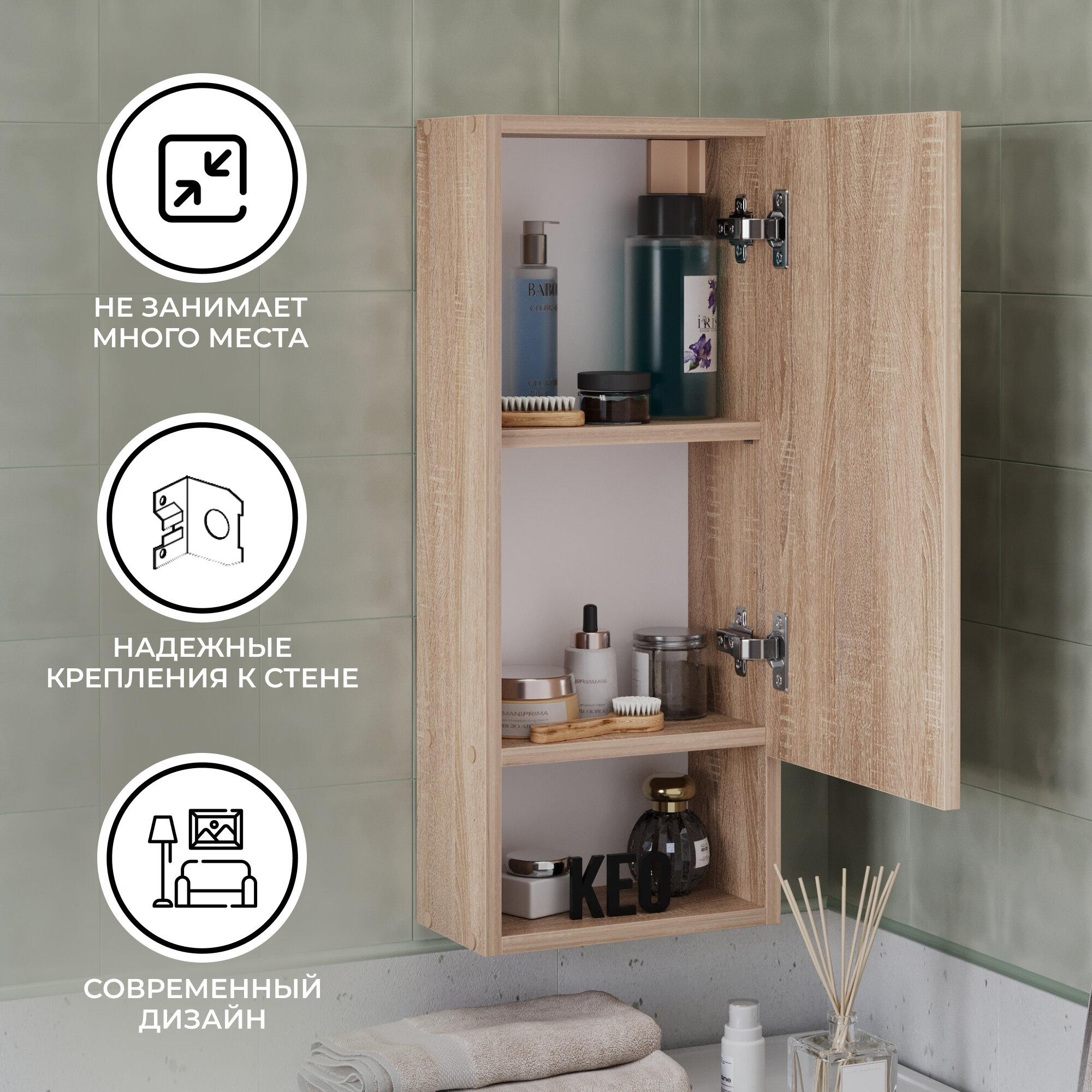 Ниже Вы можете прочитать отзывы на Шкаф навесной для ванной прихожей в ванную деревянный Кео ШКН-160 дуб сонома 740х169х300 мм, ознакомится с подробными характеристиками, посмотреть интересные обзоры и фотографии на Шкаф навесной для ванной прихожей в ванную деревянный Кео ШКН-160 дуб сонома 740х169х300 мм.